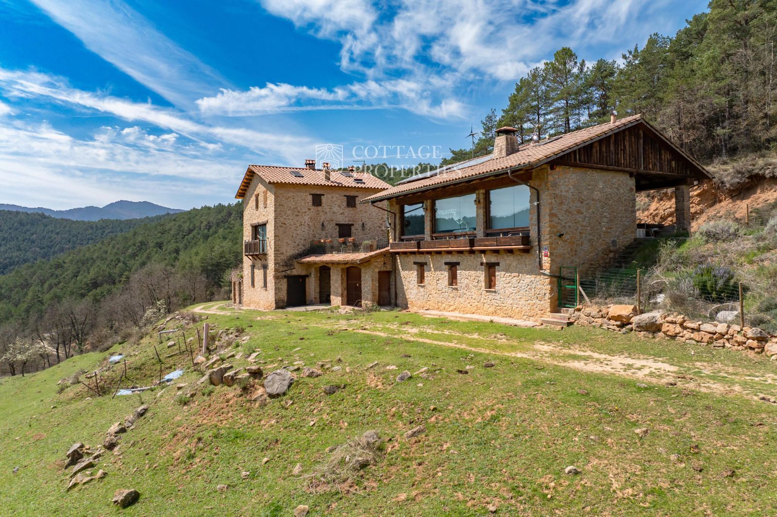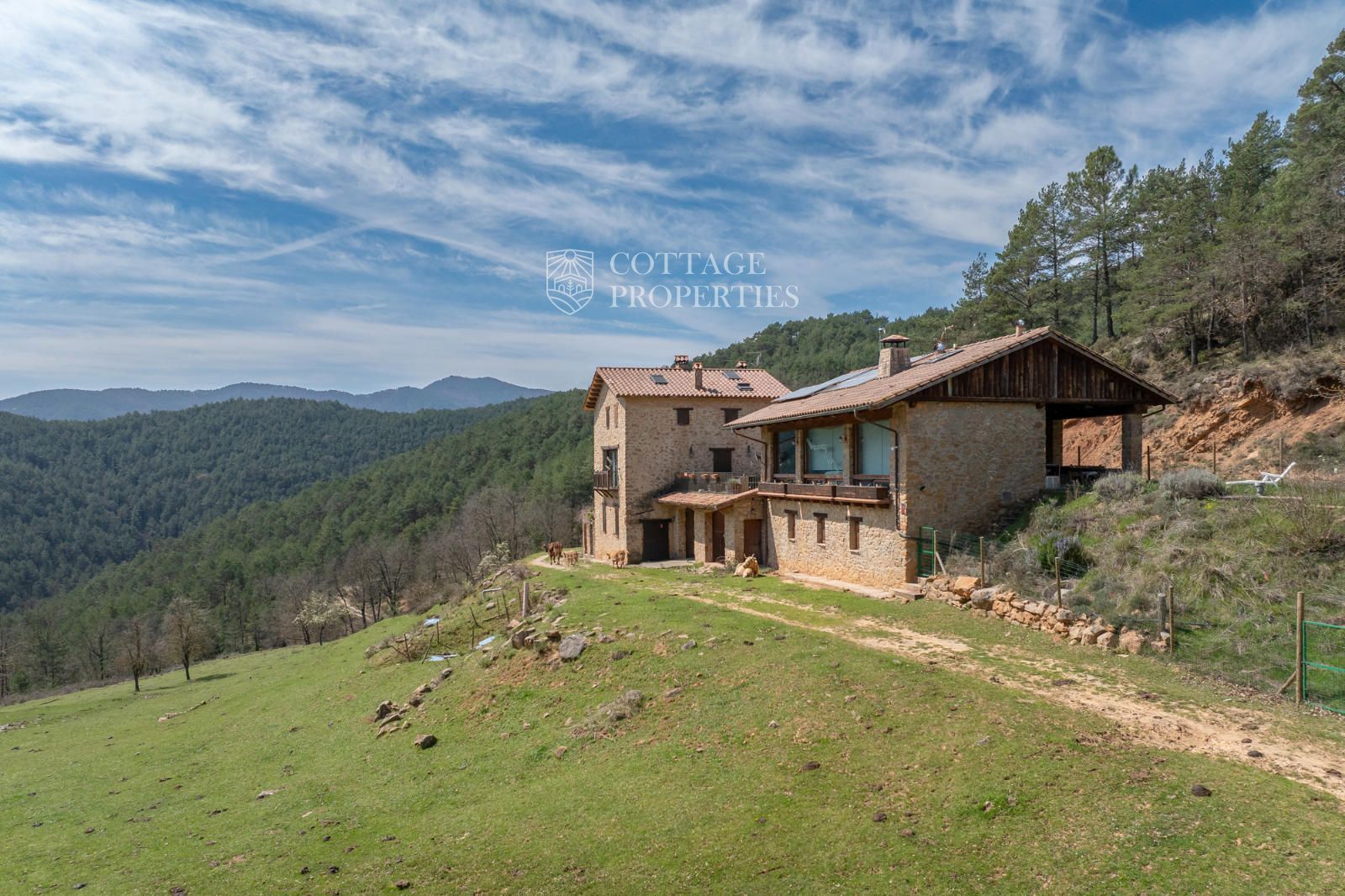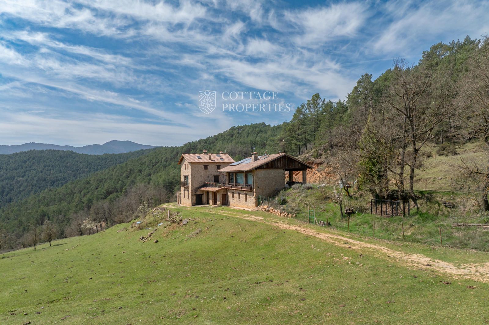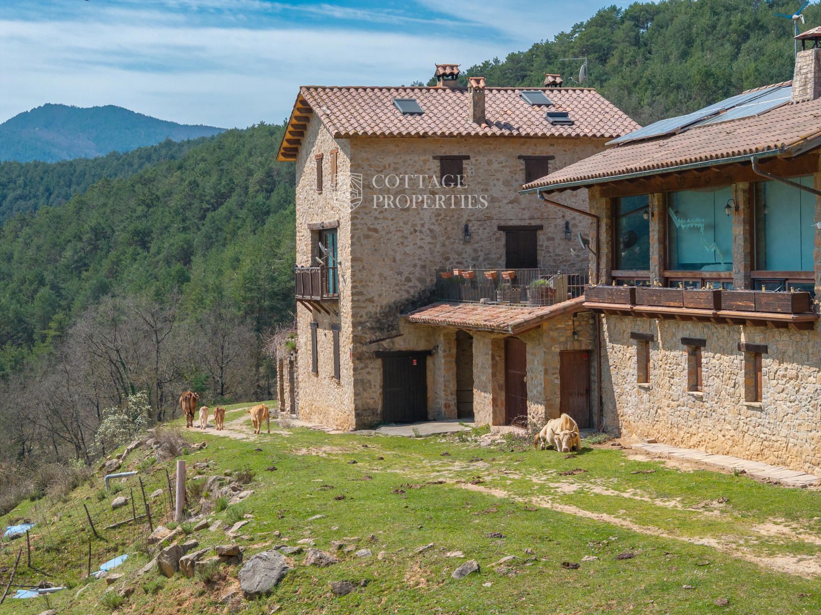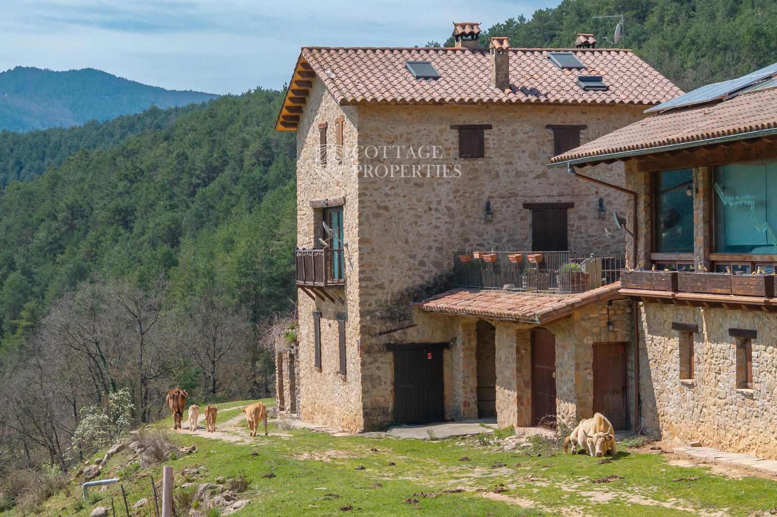 Située à seulement 10 minutes de Ripoll, cette mas a été construite au XIXe siècle sur un vaste terrain de 650 000 m², majoritairement composé de forêts et de pâturages. Elle dispose d'une surface construite de 451 m², répartie entre deux bâtiments totalement rénovés.