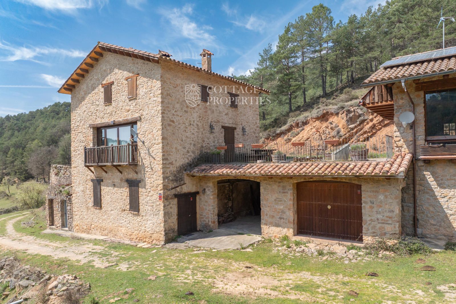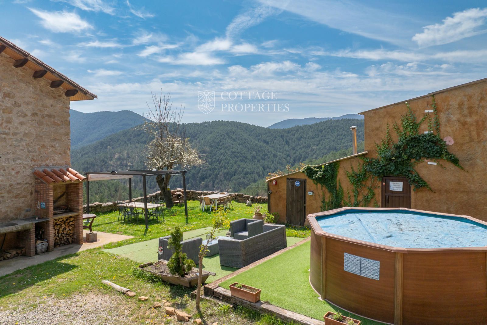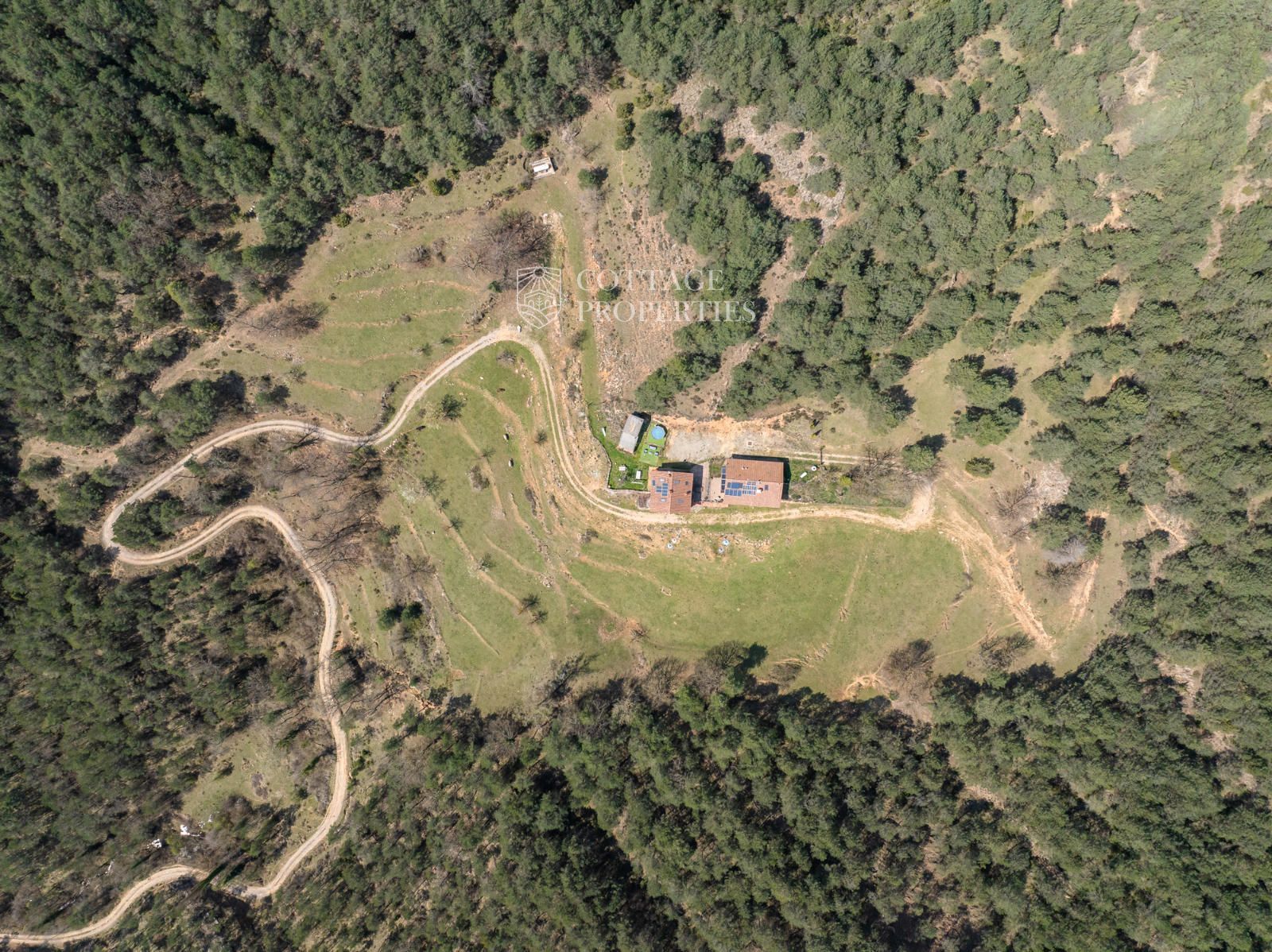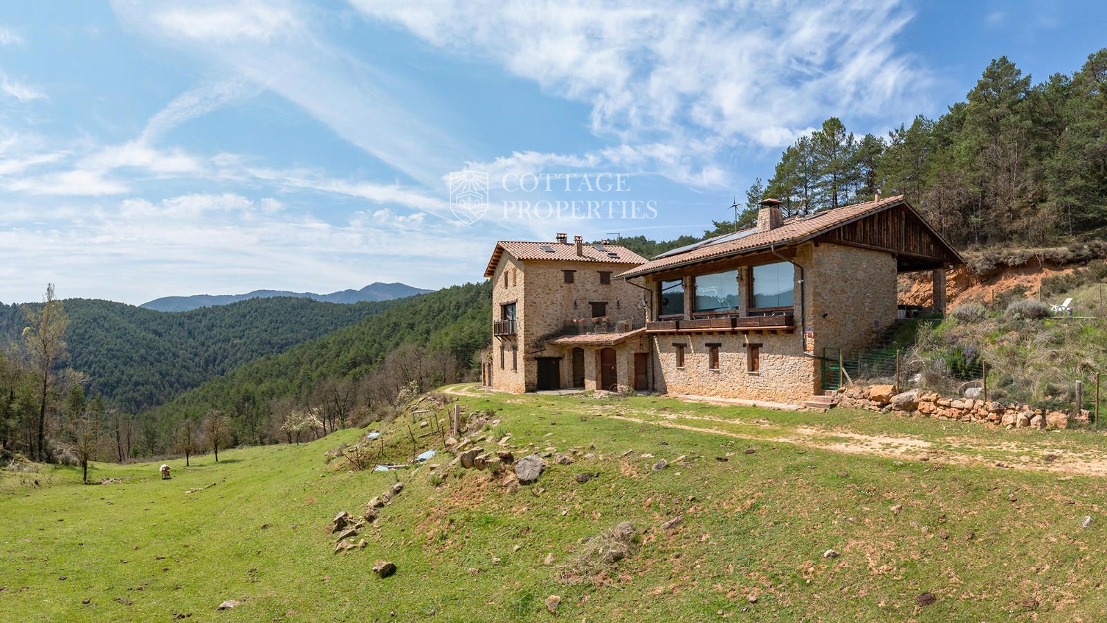Située à seulement 10 minutes de Ripoll, cette mas a été construite au XIXe siècle sur un vaste terrain de 650 000 m², majoritairement composé de forêts et de pâturages. Elle dispose d'une surface construite de 451 m², répartie entre deux bâtiments totalement rénovés.