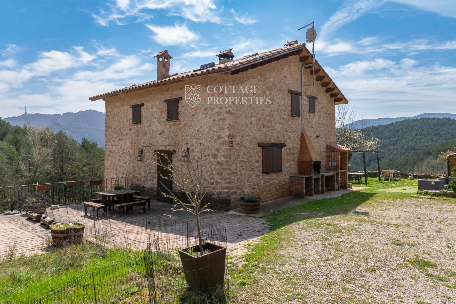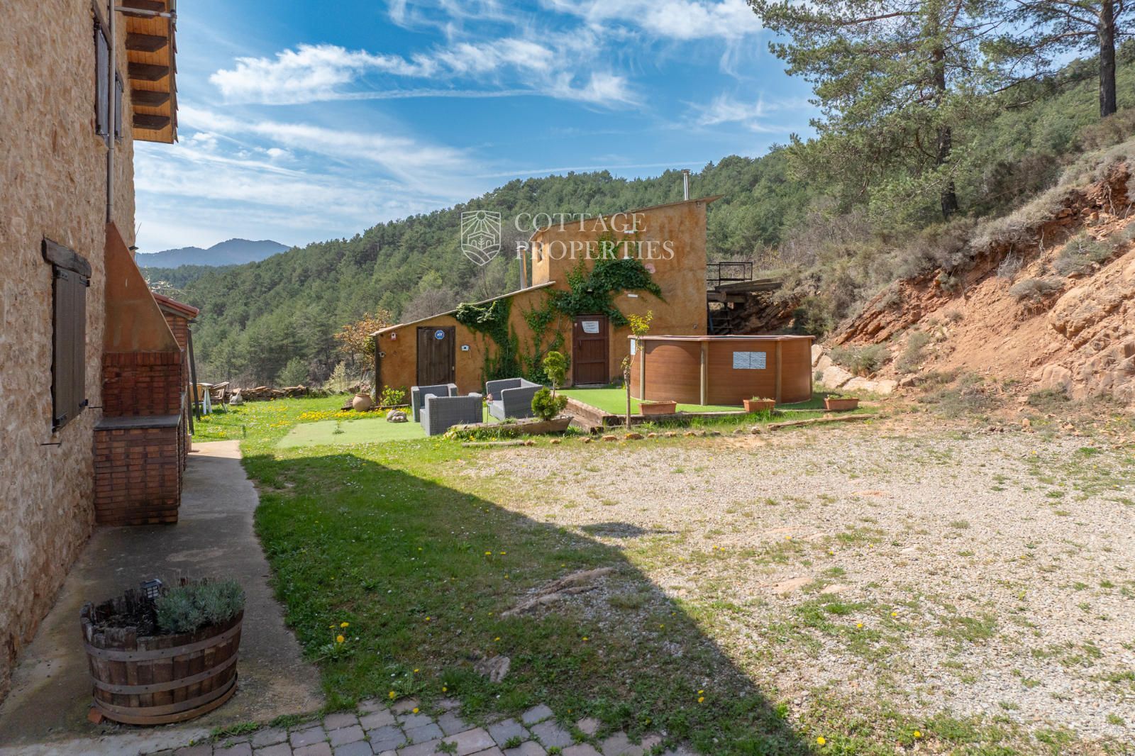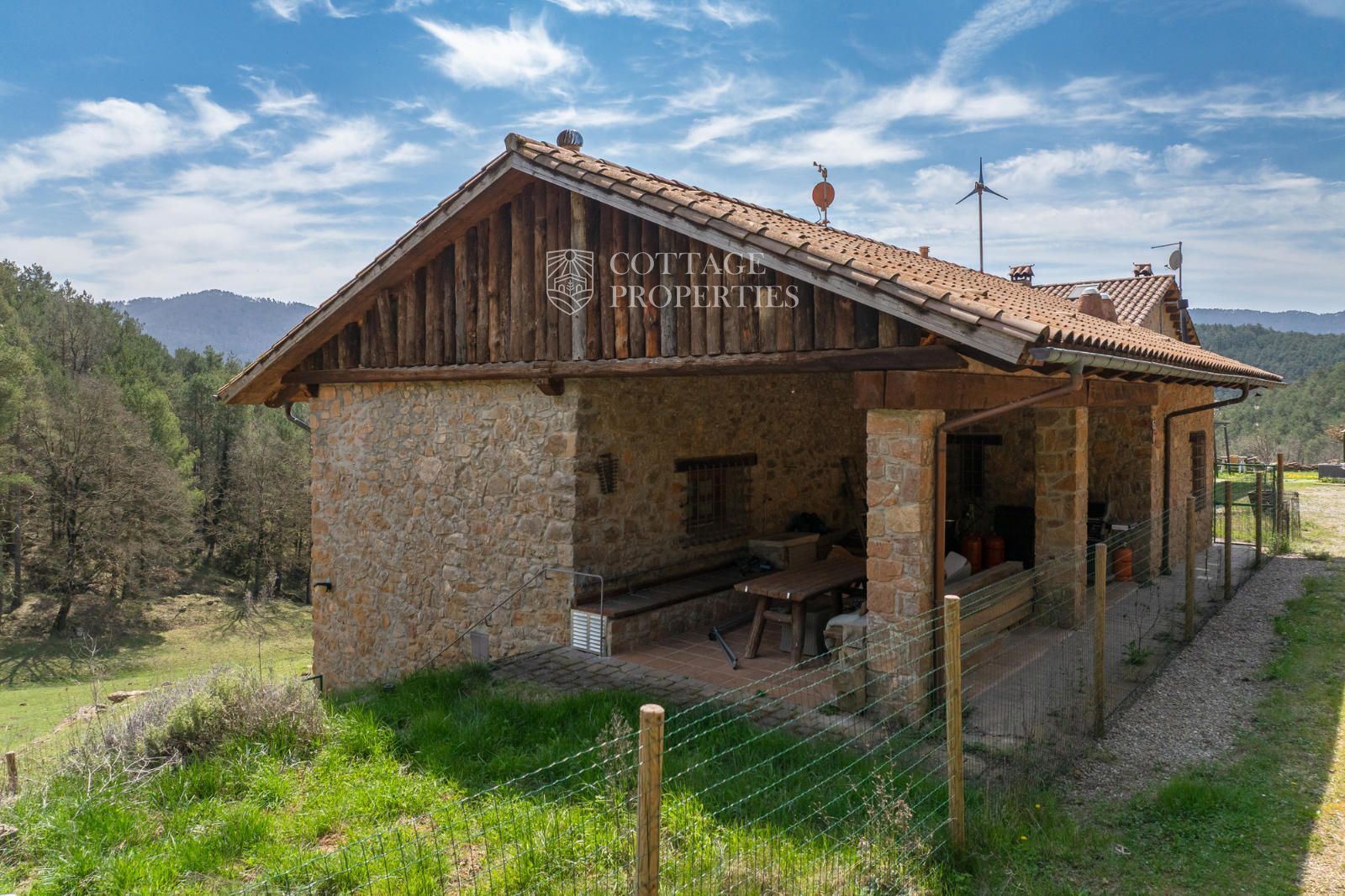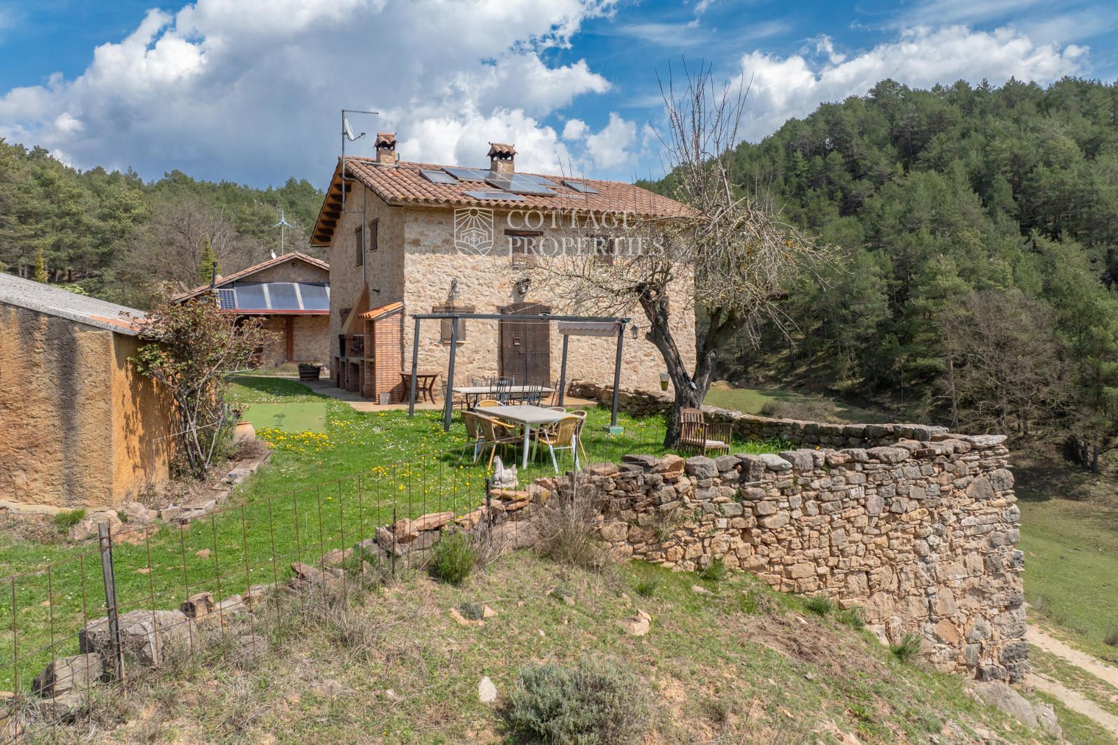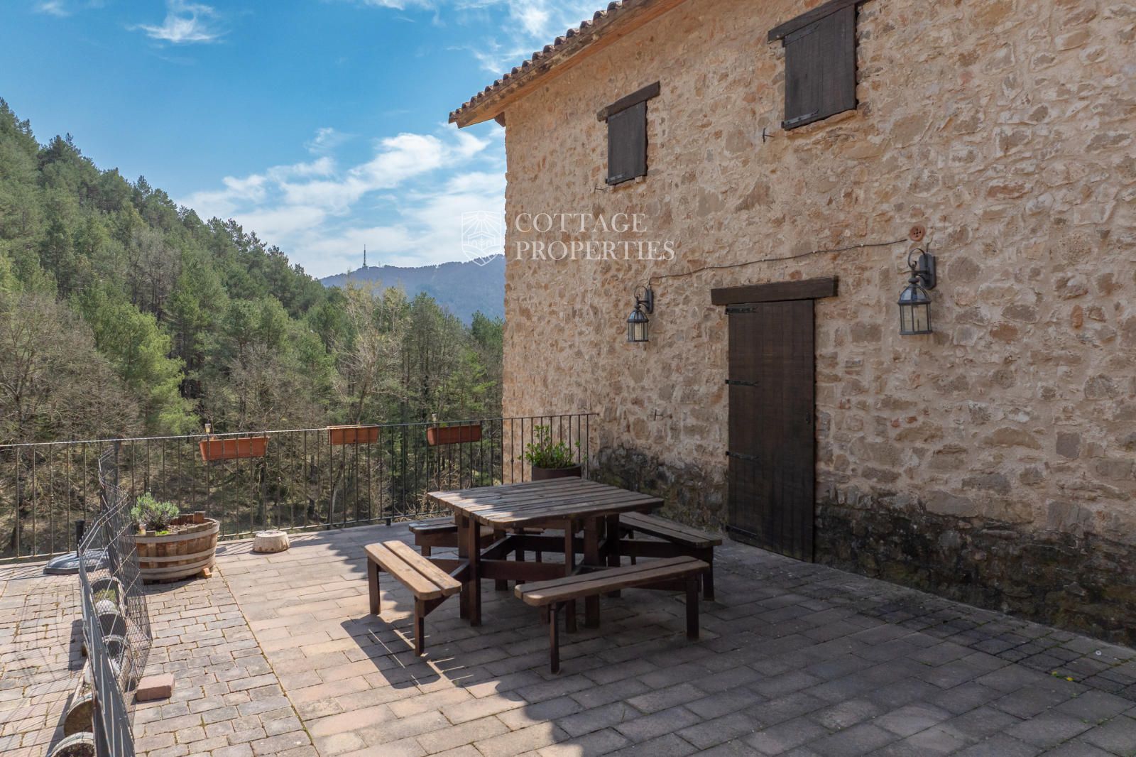 Située à seulement 10 minutes de Ripoll, cette mas a été construite au XIXe siècle sur un vaste terrain de 650 000 m², majoritairement composé de forêts et de pâturages. Elle dispose d'une surface construite de 451 m², répartie entre deux bâtiments totalement rénovés.