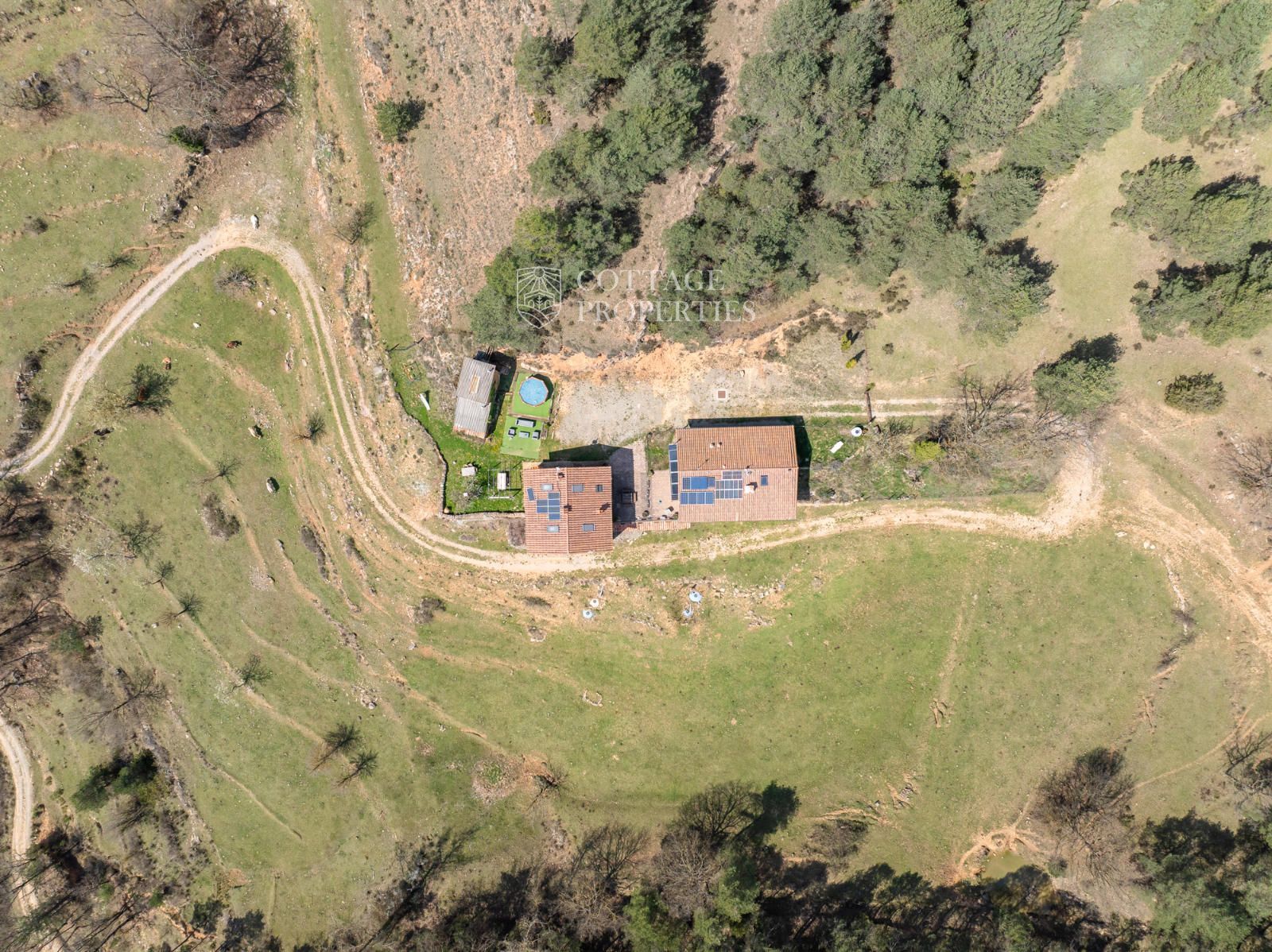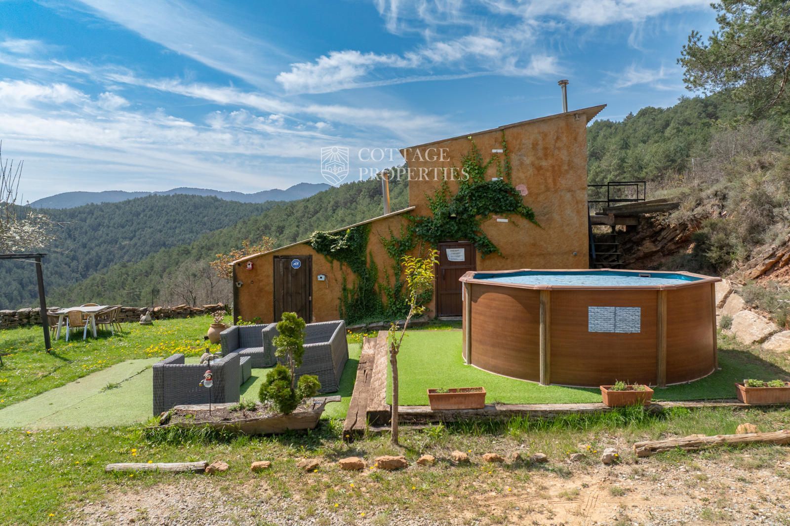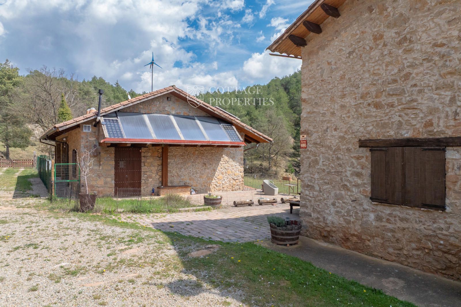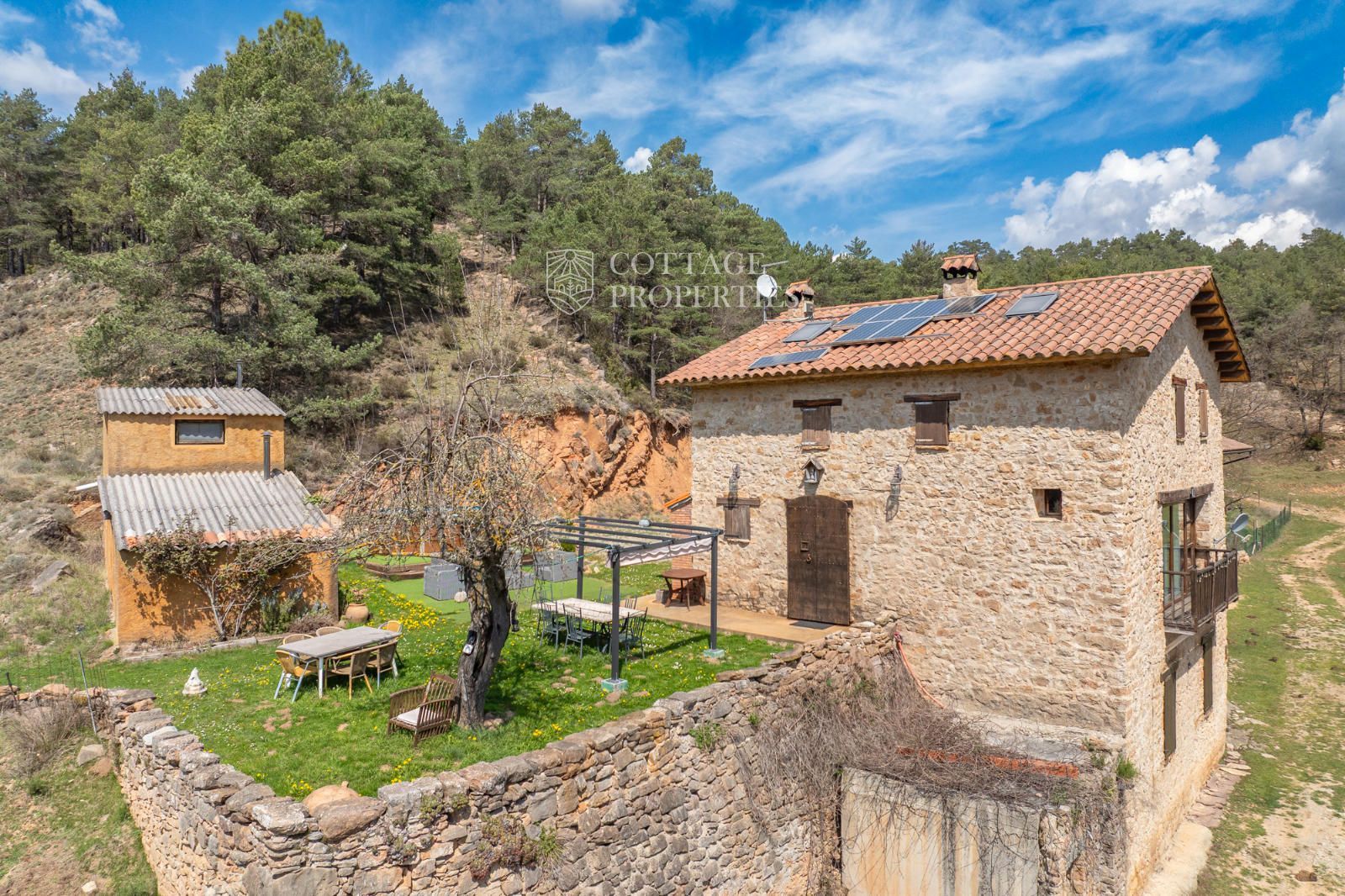 Située à seulement 10 minutes de Ripoll, cette mas a été construite au XIXe siècle sur un vaste terrain de 650 000 m², majoritairement composé de forêts et de pâturages. Elle dispose d'une surface construite de 451 m², répartie entre deux bâtiments totalement rénovés.