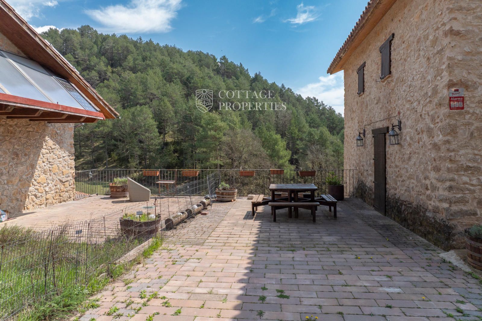 L'extérieur comprend un vaste terrain de 65 hectares, composé de forêts, de prairies et de zones de culture, créant une oasis de tranquillité et de beauté naturelle. Le domaine est idéal pour des activités agricoles, d'élevage ou de tourisme rural, offrant de multiples possibilités pour profiter du cadre naturel du Ripollès.