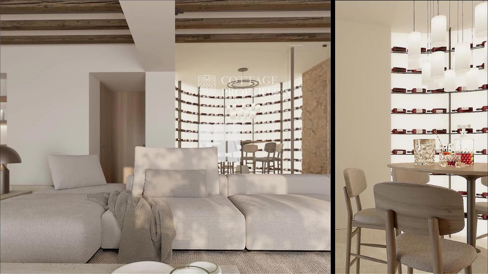 La propriété dispose d'un élégant hall d'entrée donnant accès à de vastes espaces de vie. Au rez-de-chaussée se trouvent un grand salon, une salle à manger, une cuisine design avec cellier, une cave à vin privée, une salle familiale polyvalente, un bureau avec salle de bains privative ainsi qu'une chambre en suite. Un charmant patio intérieur apporte une belle luminosité naturelle et assure une connexion fluide entre les espaces intérieurs et extérieurs.