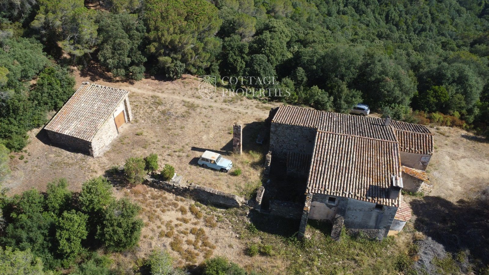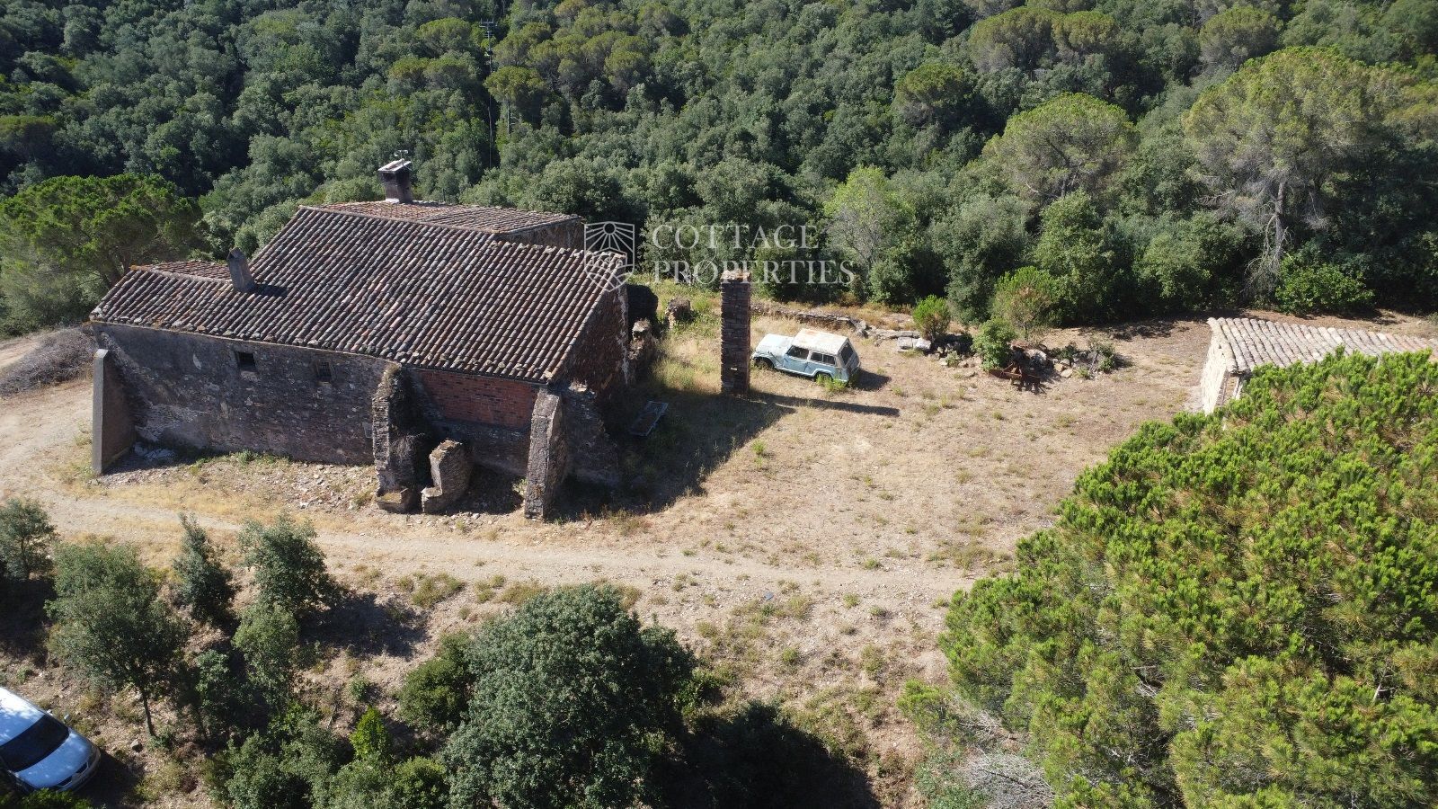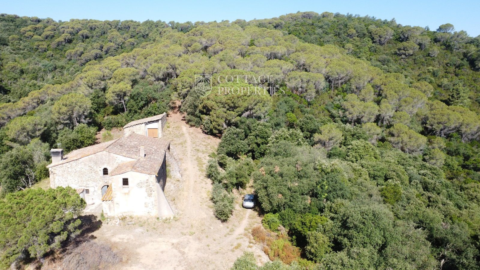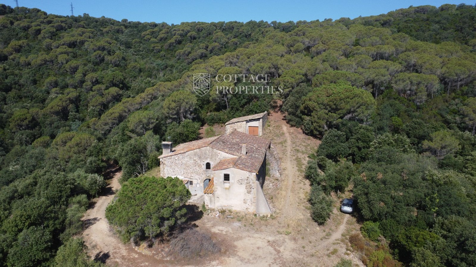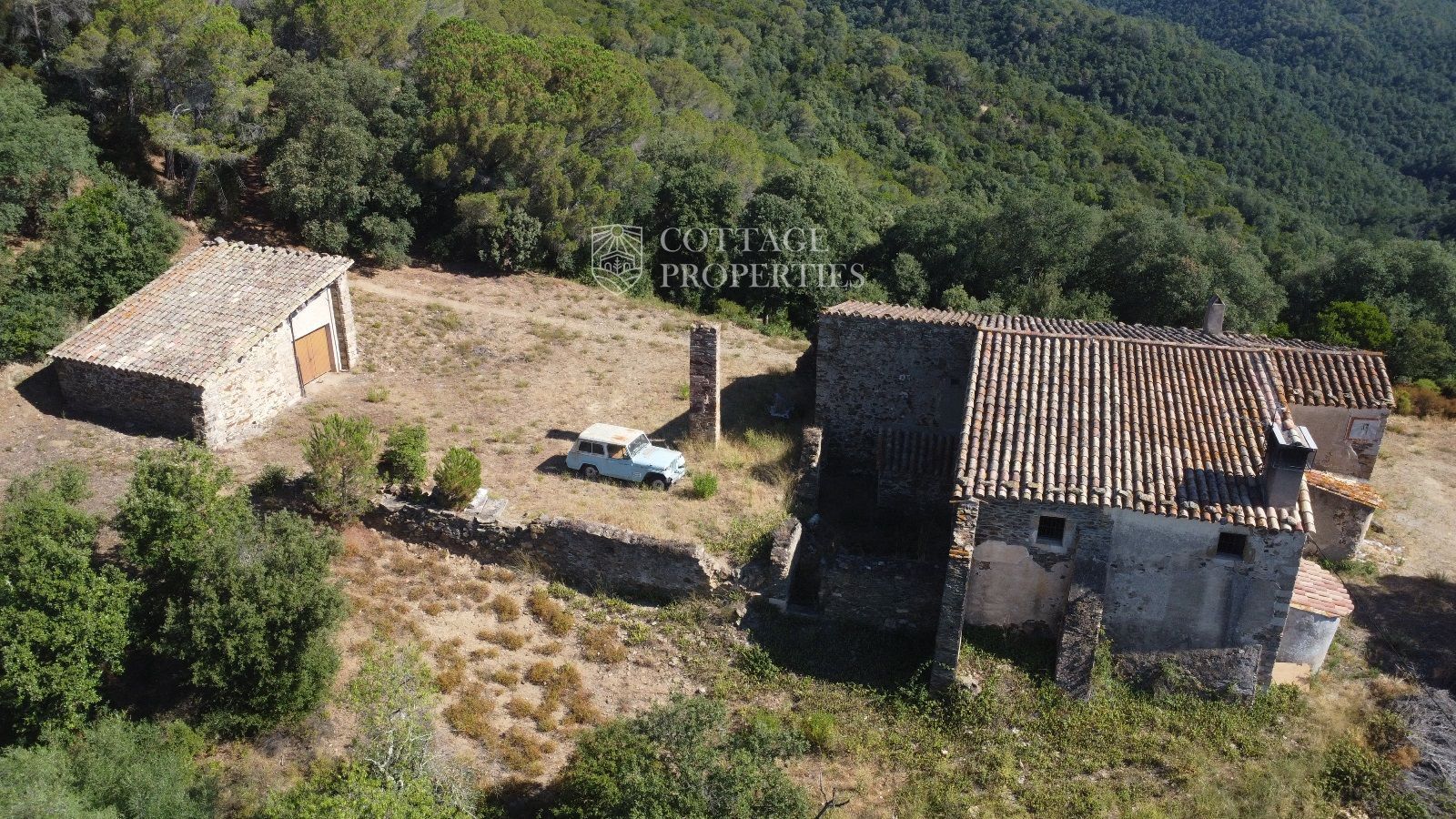 La masia se trouve à seulement 15 minutes de Quart, une ville avec tous les services, et à 30 minutes de Girona, avec une gare AVE. De plus, elle est à une heure des plus belles plages de la Costa Brava. La propriété dispose d'une surface construite d'environ 370 m², avec un bâtiment annexe de 65 m², le tout sur un terrain de 50 hectares.