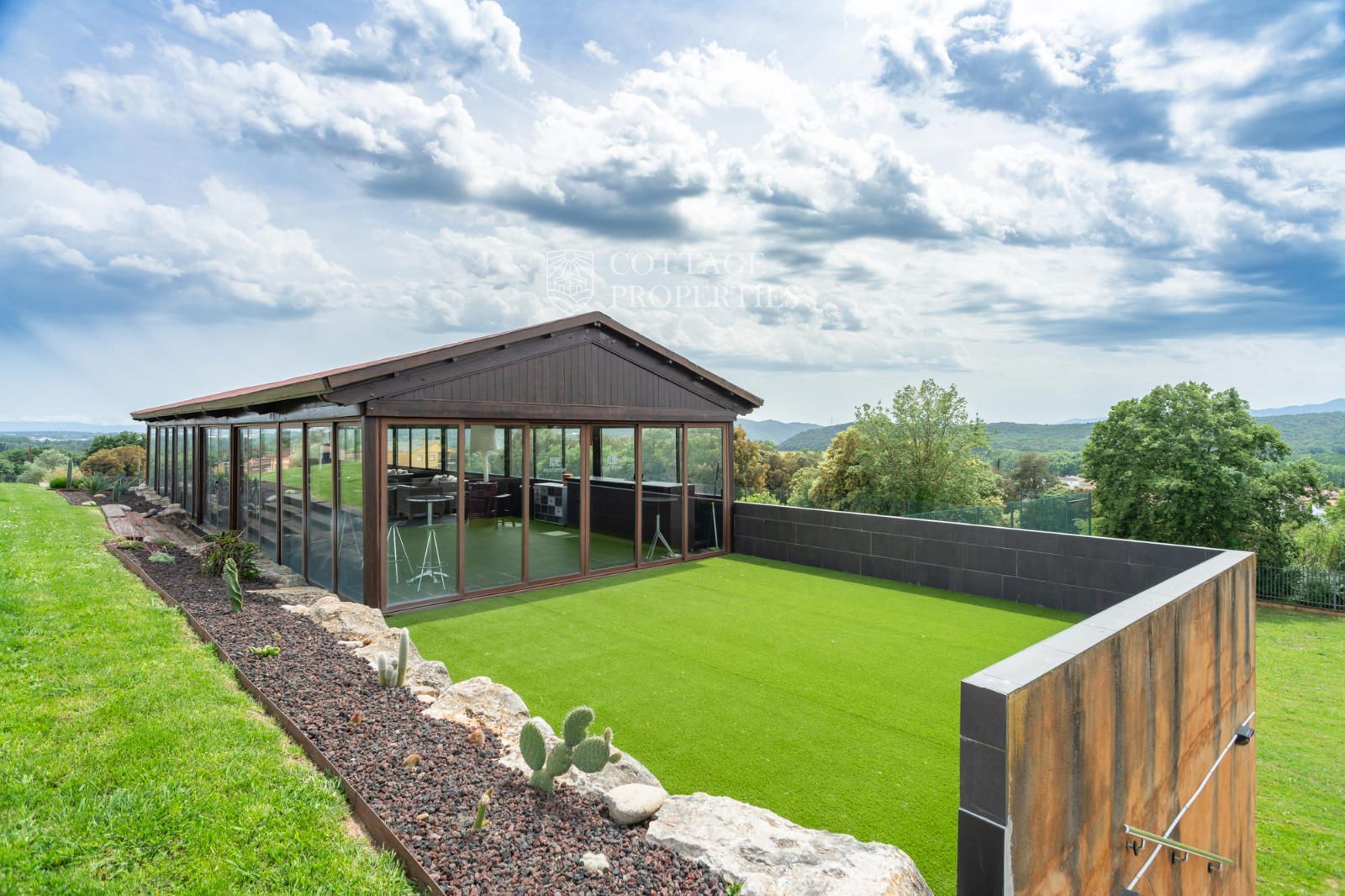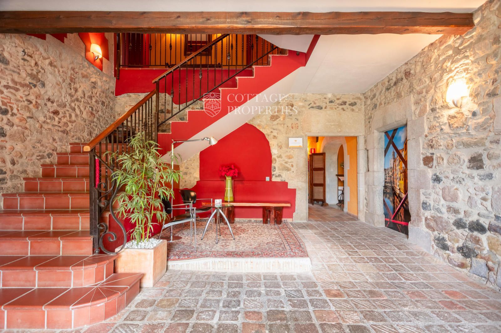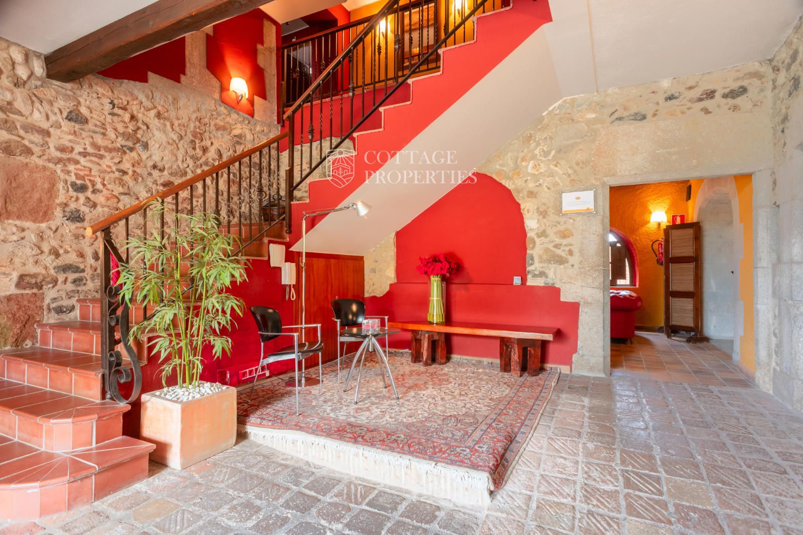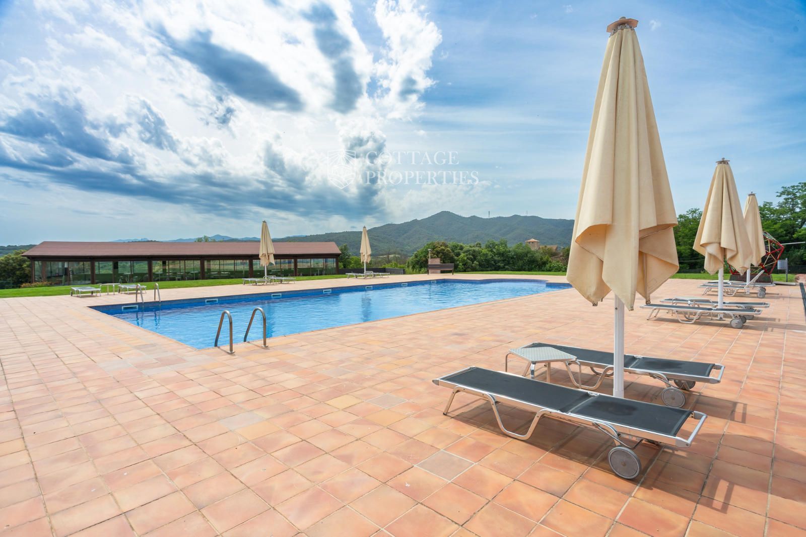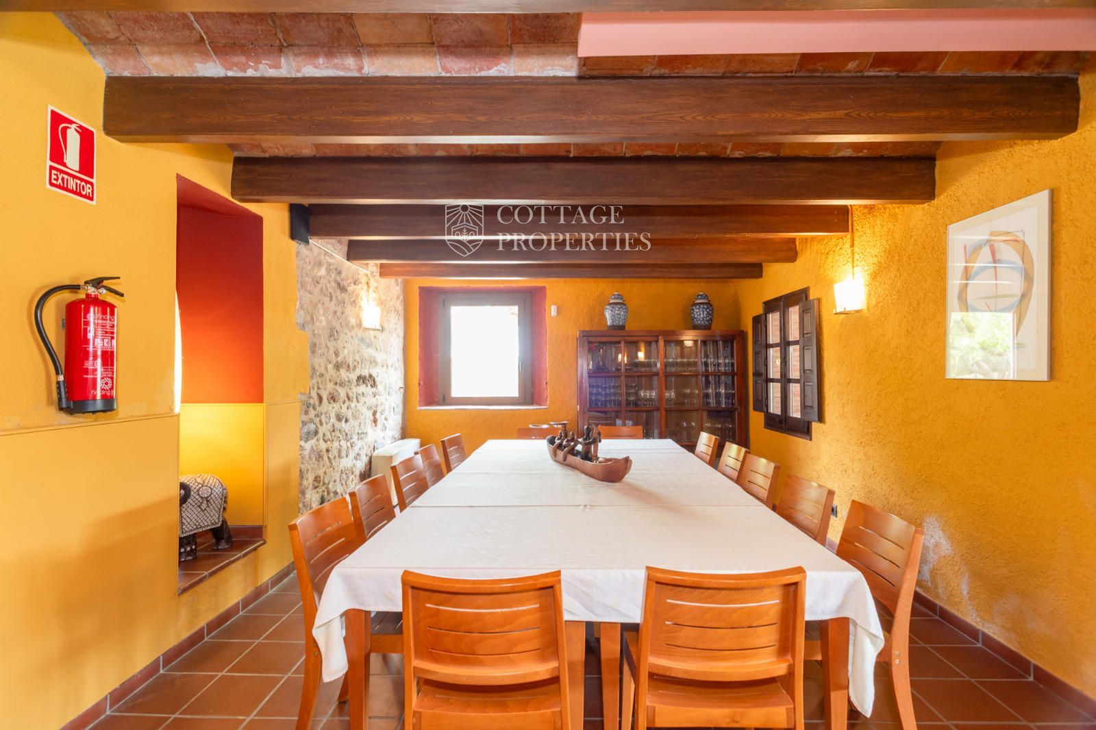 La masia comprend une accueillante salle de réception, une salle de réunion, un coin télévision avec bar, une cave, une bibliothèque, deux grandes salles à manger et une vaste cuisine professionnelle équipée pour le service traiteur. Une terrasse couverte, idéale pour les dîners d'été, communique avec les espaces extérieurs. Au premier étage, on trouve 9 chambres avec salle de bain privée, et au deuxième étage, les 3 chambres restantes, également avec salle de bain. Toutes les chambres sont équipées de climatisation, chauffage central, télévision et téléphone. Un bâtiment indépendant avec entrée privée, adjacent à la bâtisse principale, est actuellement en cours de rénovation pour être transformé en loft. De plus, dans le jardin, il y a une salle d'événements de 100 m² avec vue sur la vallée, et à l'étage inférieur se trouvent vestiaires, salle de sport, sauna et rangements.