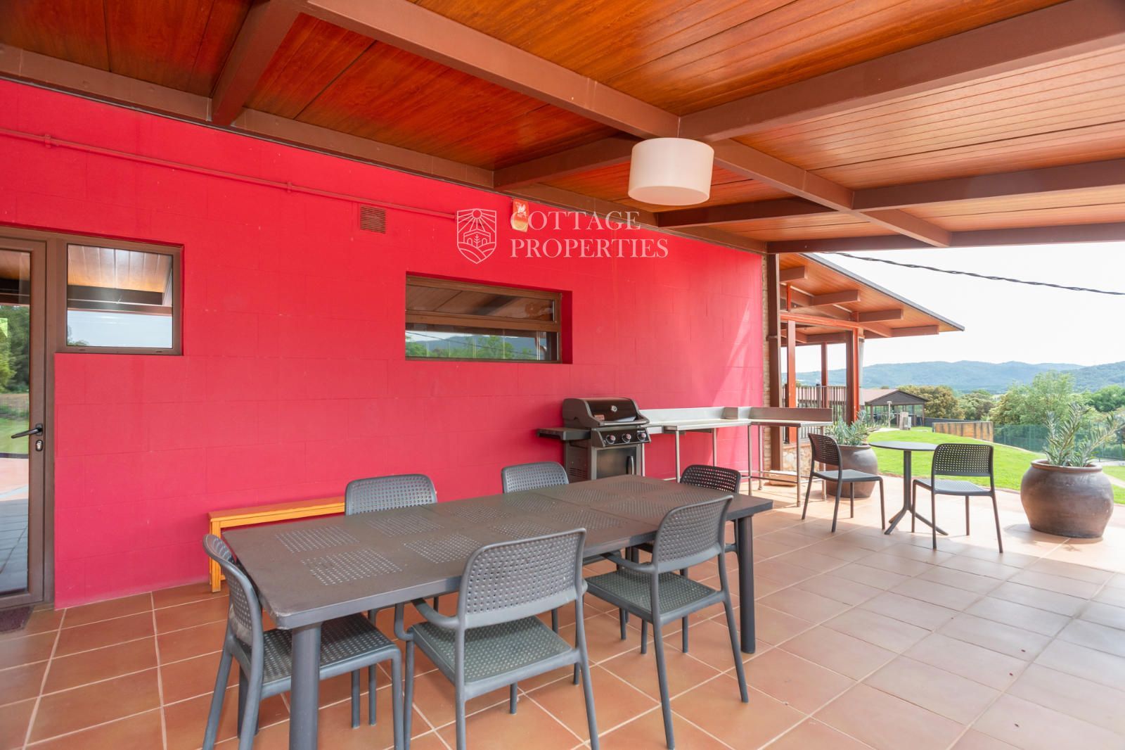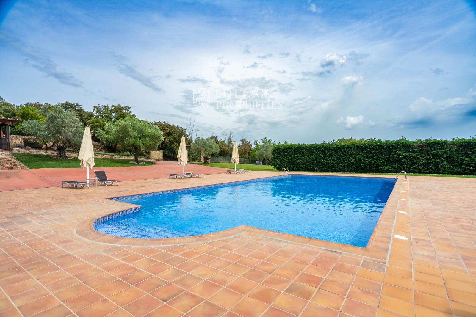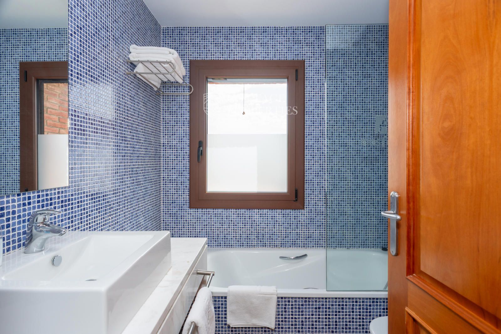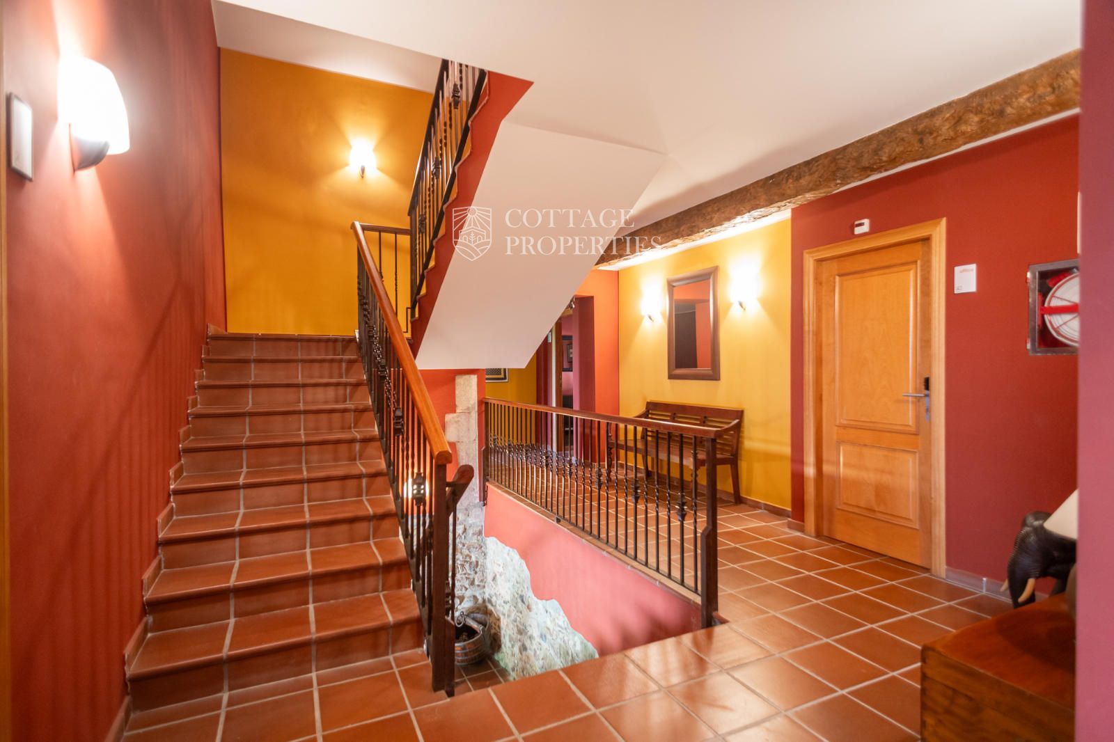 La masia comprend une accueillante salle de réception, une salle de réunion, un coin télévision avec bar, une cave, une bibliothèque, deux grandes salles à manger et une vaste cuisine professionnelle équipée pour le service traiteur. Une terrasse couverte, idéale pour les dîners d'été, communique avec les espaces extérieurs. Au premier étage, on trouve 9 chambres avec salle de bain privée, et au deuxième étage, les 3 chambres restantes, également avec salle de bain. Toutes les chambres sont équipées de climatisation, chauffage central, télévision et téléphone. Un bâtiment indépendant avec entrée privée, adjacent à la bâtisse principale, est actuellement en cours de rénovation pour être transformé en loft. De plus, dans le jardin, il y a une salle d'événements de 100 m² avec vue sur la vallée, et à l'étage inférieur se trouvent vestiaires, salle de sport, sauna et rangements.