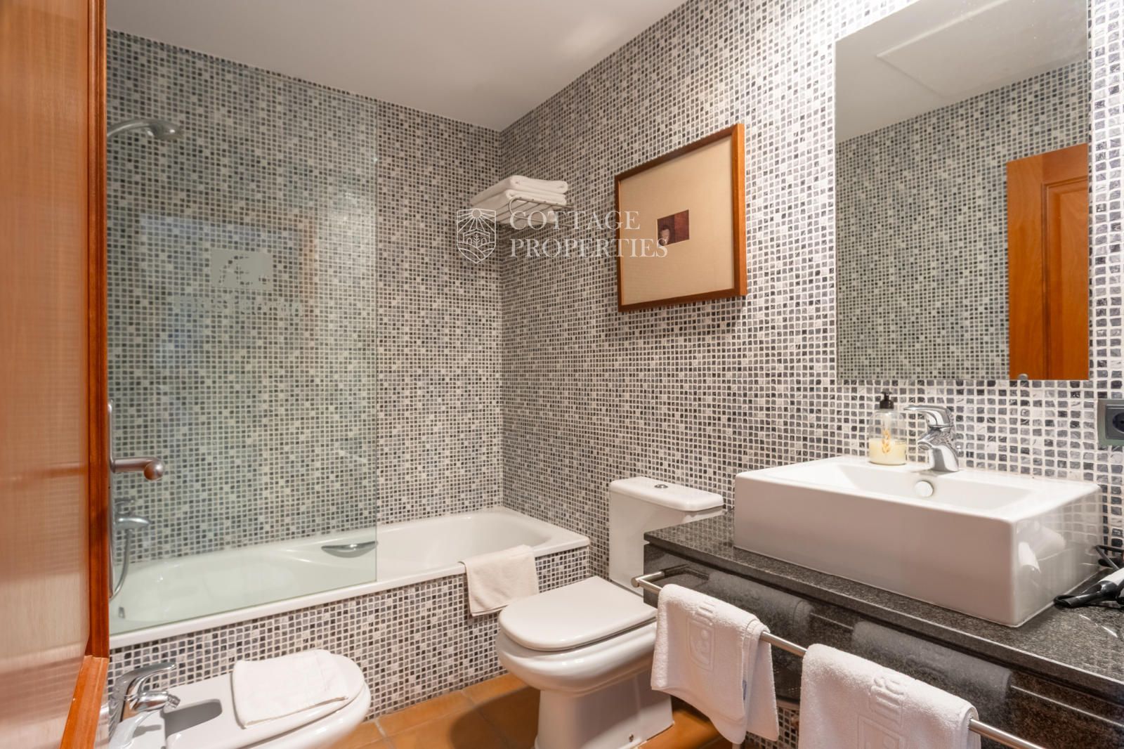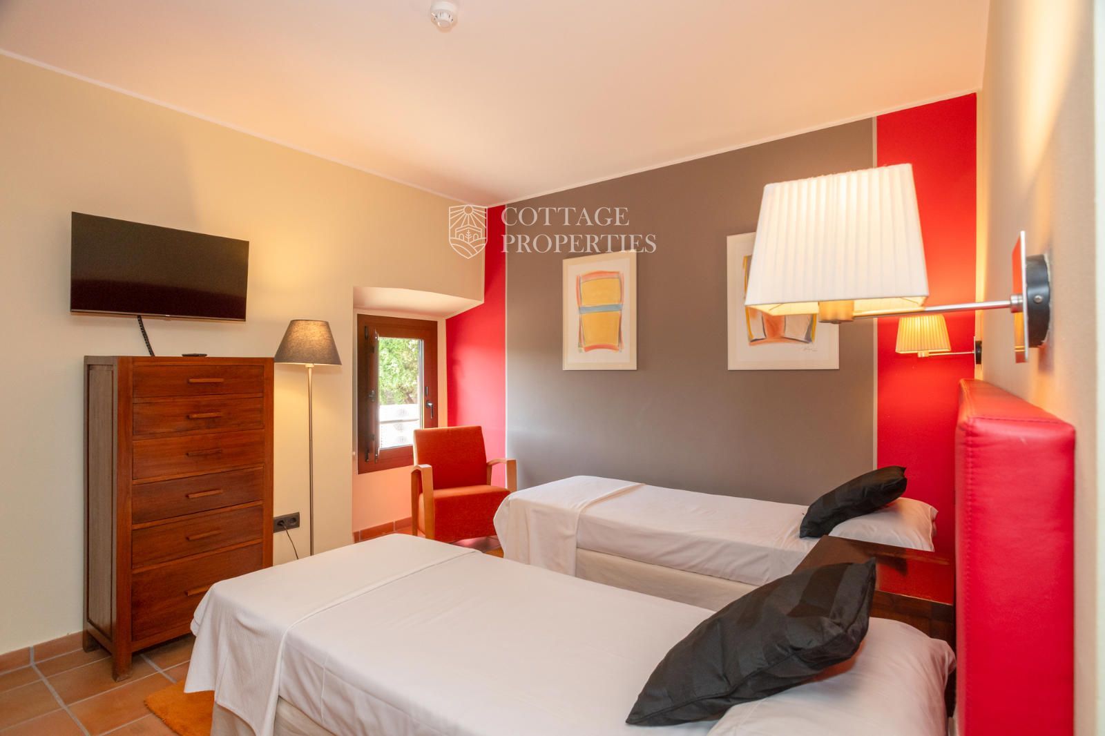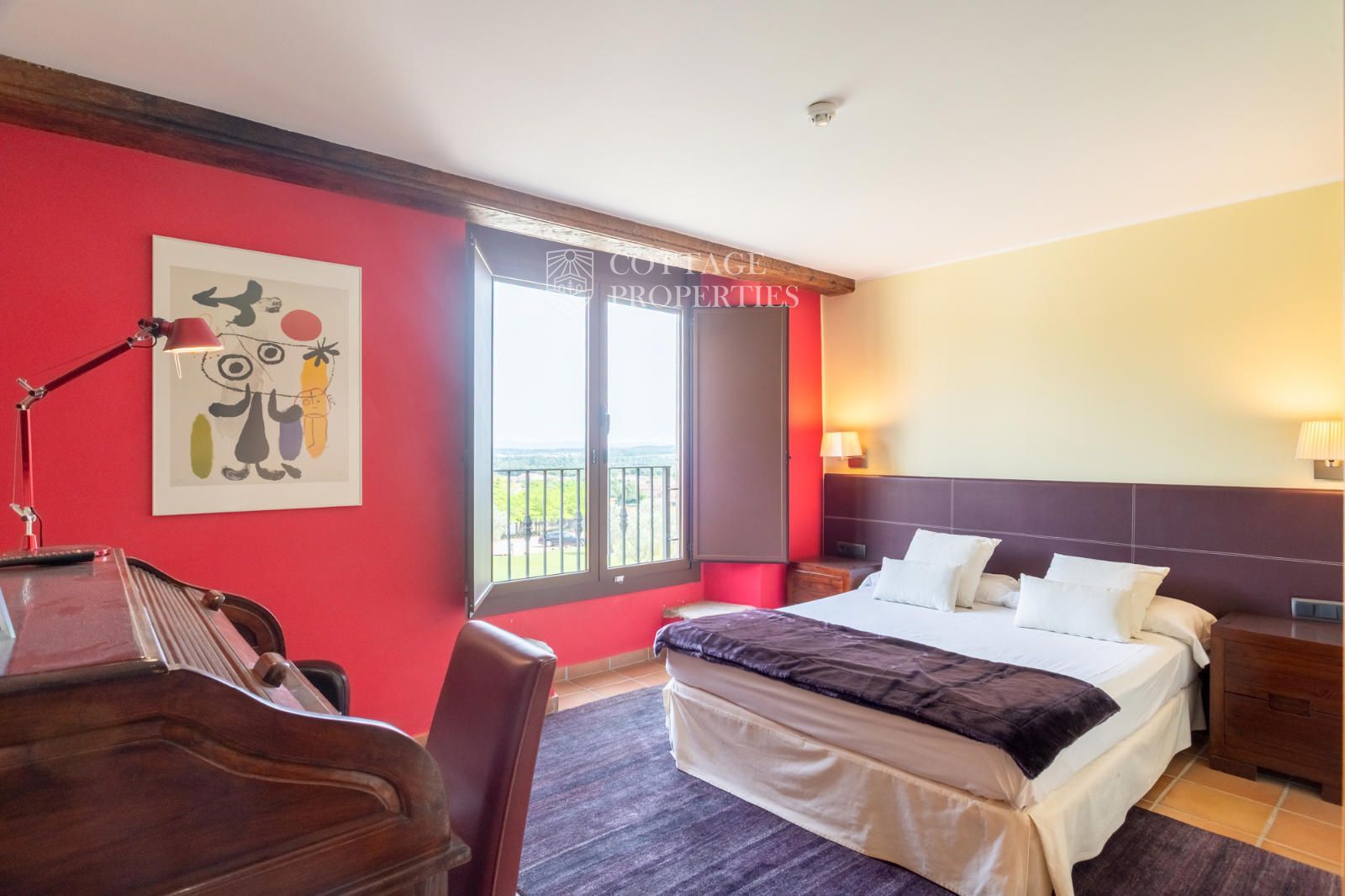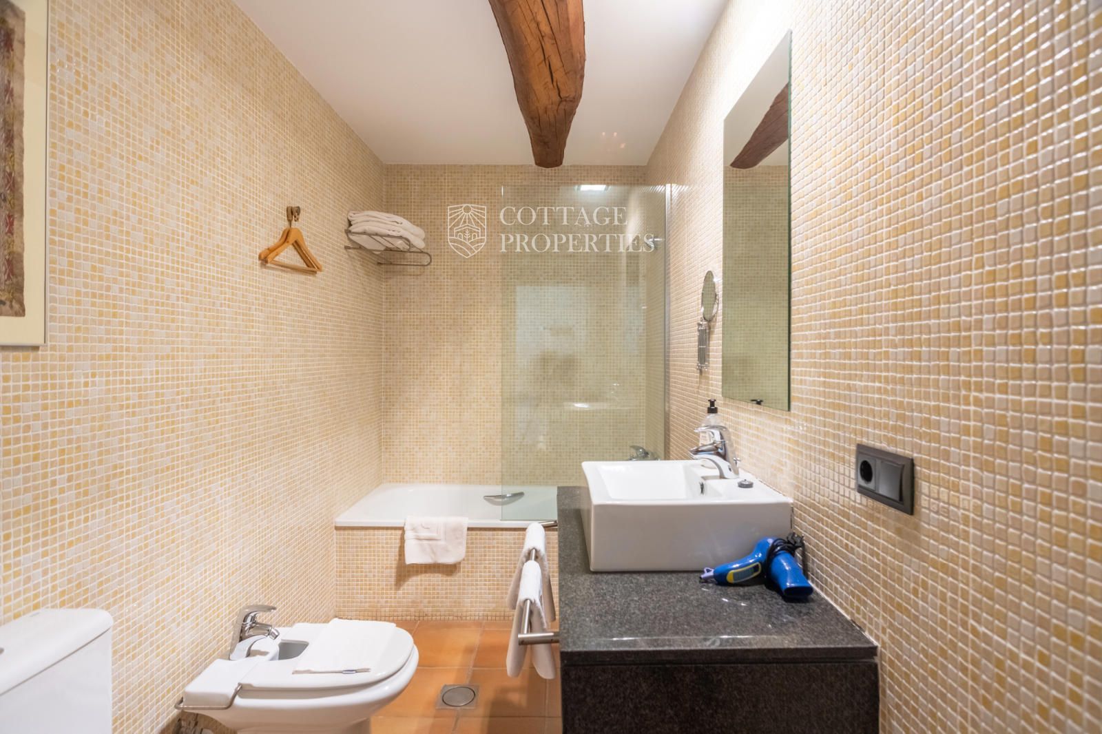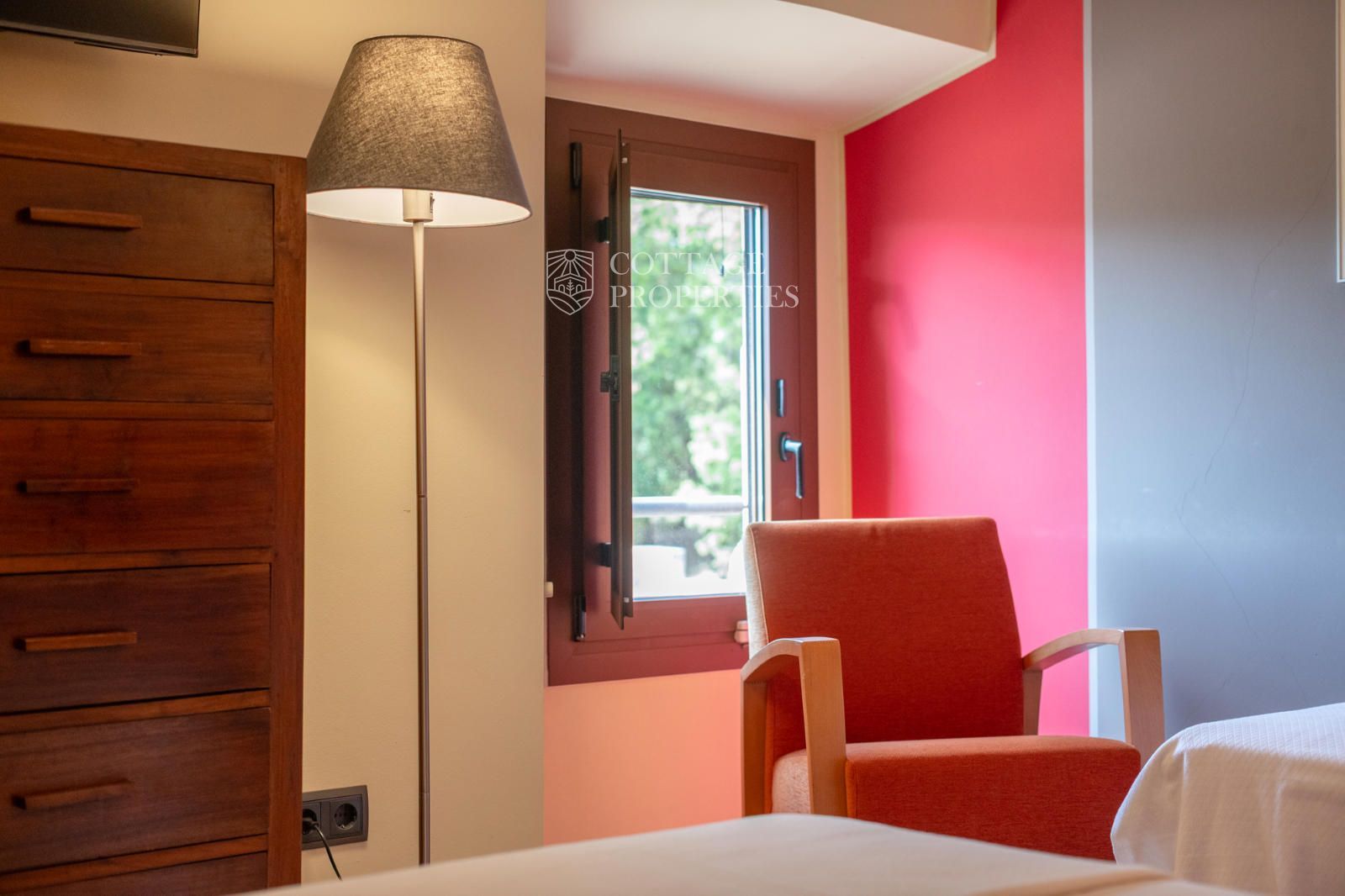 La masia comprend une accueillante salle de réception, une salle de réunion, un coin télévision avec bar, une cave, une bibliothèque, deux grandes salles à manger et une vaste cuisine professionnelle équipée pour le service traiteur. Une terrasse couverte, idéale pour les dîners d'été, communique avec les espaces extérieurs. Au premier étage, on trouve 9 chambres avec salle de bain privée, et au deuxième étage, les 3 chambres restantes, également avec salle de bain. Toutes les chambres sont équipées de climatisation, chauffage central, télévision et téléphone. Un bâtiment indépendant avec entrée privée, adjacent à la bâtisse principale, est actuellement en cours de rénovation pour être transformé en loft. De plus, dans le jardin, il y a une salle d'événements de 100 m² avec vue sur la vallée, et à l'étage inférieur se trouvent vestiaires, salle de sport, sauna et rangements.