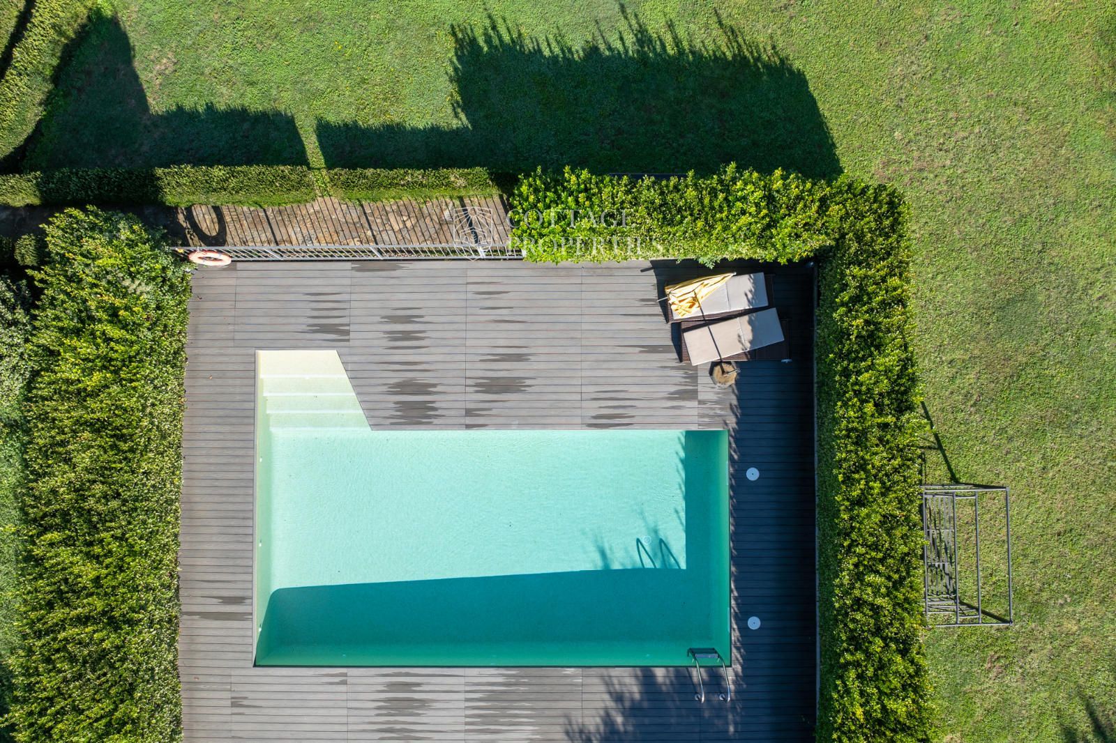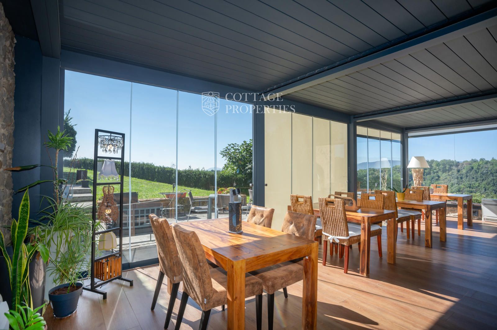 Elle dispose de 5 terrasses avec vues panoramiques, une piscine chauffée (et possibilité d'en ajouter une seconde), un jardin, un espace barbecue et un parking pour 8 voitures.