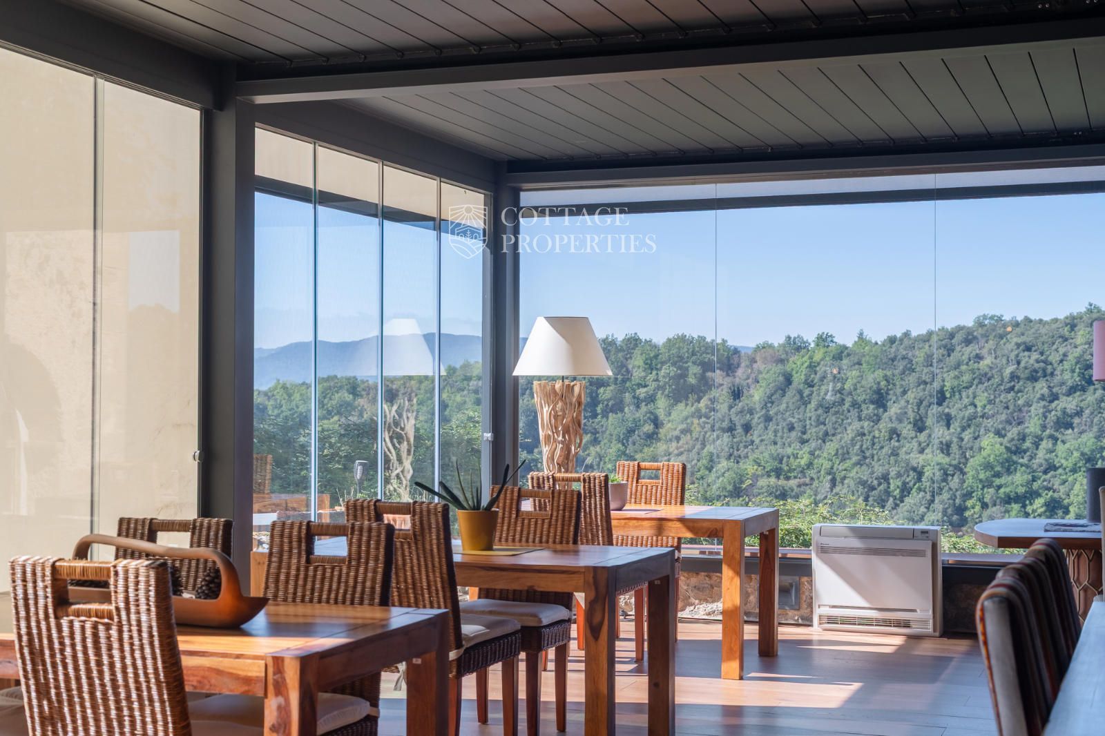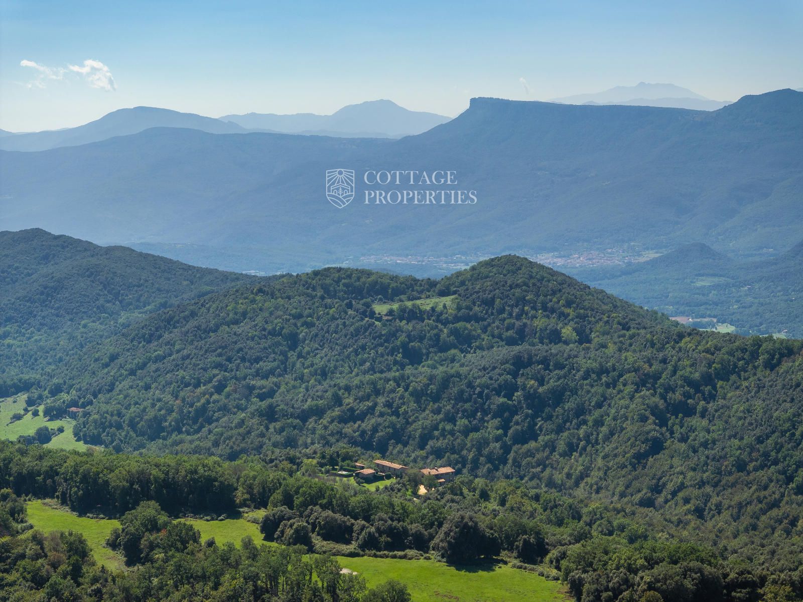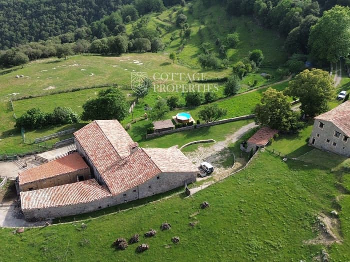 Cette propriété unique offre un lien direct avec la nature et son environnement protégé, dans un cadre d'intimité absolue. Entourée de 25 hectares de terrain privé —au sein d'un domaine principal de 400 hectares—, elle offre une vue panoramique incomparable, du Puigmal jusqu'à la Méditerranée.