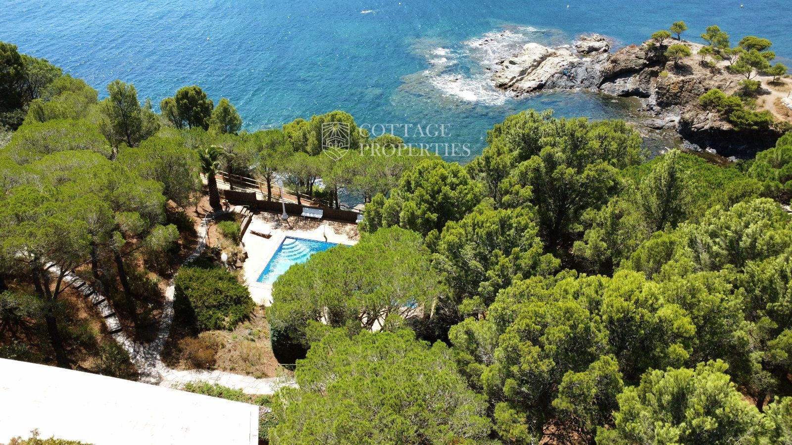 Bienvenue dans cette villa de luxe située sur la Costa Brava, à Gérone. Cette propriété offre un cadre luxueux et confortable, avec des vues panoramiques sur la mer Méditerranée qui invitent à profiter de la tranquillité et de la beauté naturelle. Avec son design méditerranéen exclusif et son emplacement privé, elle est idéale pour ceux qui recherchent une résidence avec une intimité totale et des vues inégalées.
