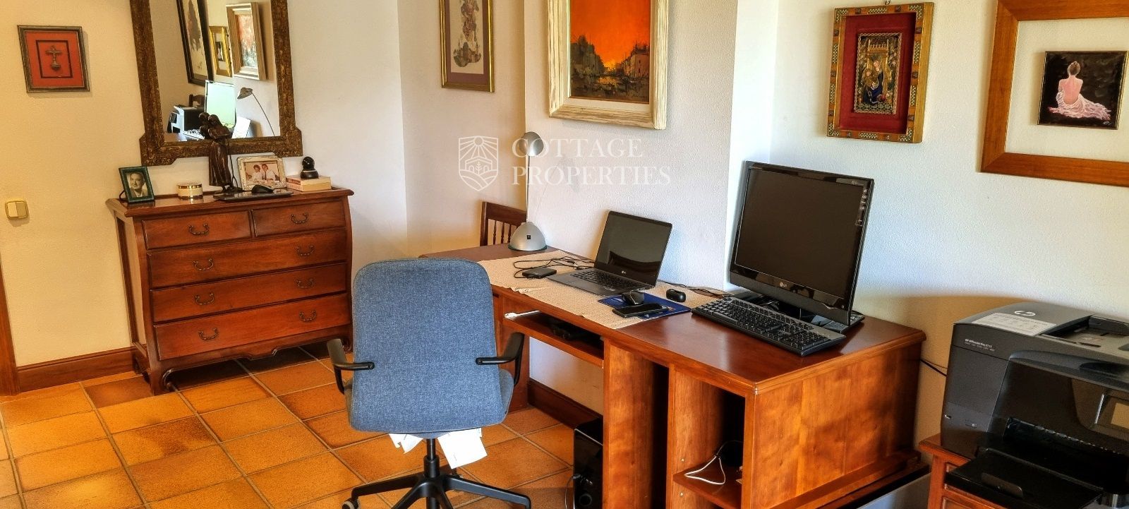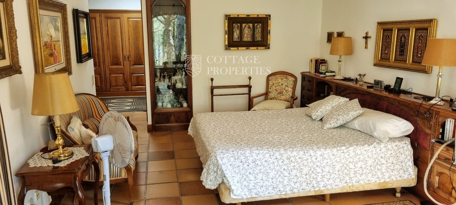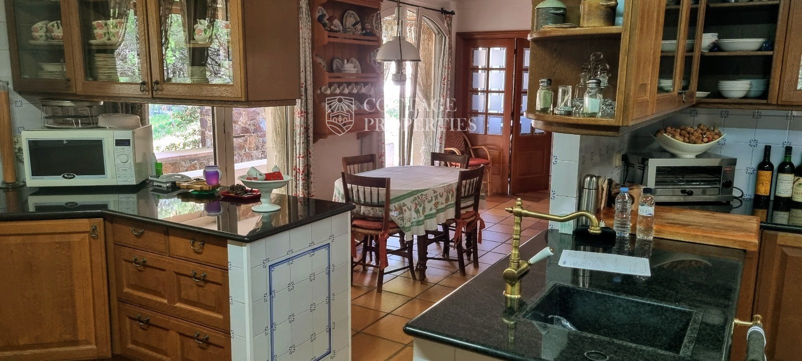 À l'extérieur, vous trouverez un beau jardin avec une piscine, des espaces verts, une cinquantaine d'oliviers, des arbres fruitiers, un potager et un poulailler, créant un environnement de paix et de beauté naturelle. De plus, la propriété est équipée d'un système d'alarme, du chauffage, d'un garage pour 6 voitures, d'un système d'irrigation automatique, de fenêtres renforcées, d'éclairage nocturne, de plusieurs terrasses, de hauts plafonds, d'armoires encastrées et de volets.