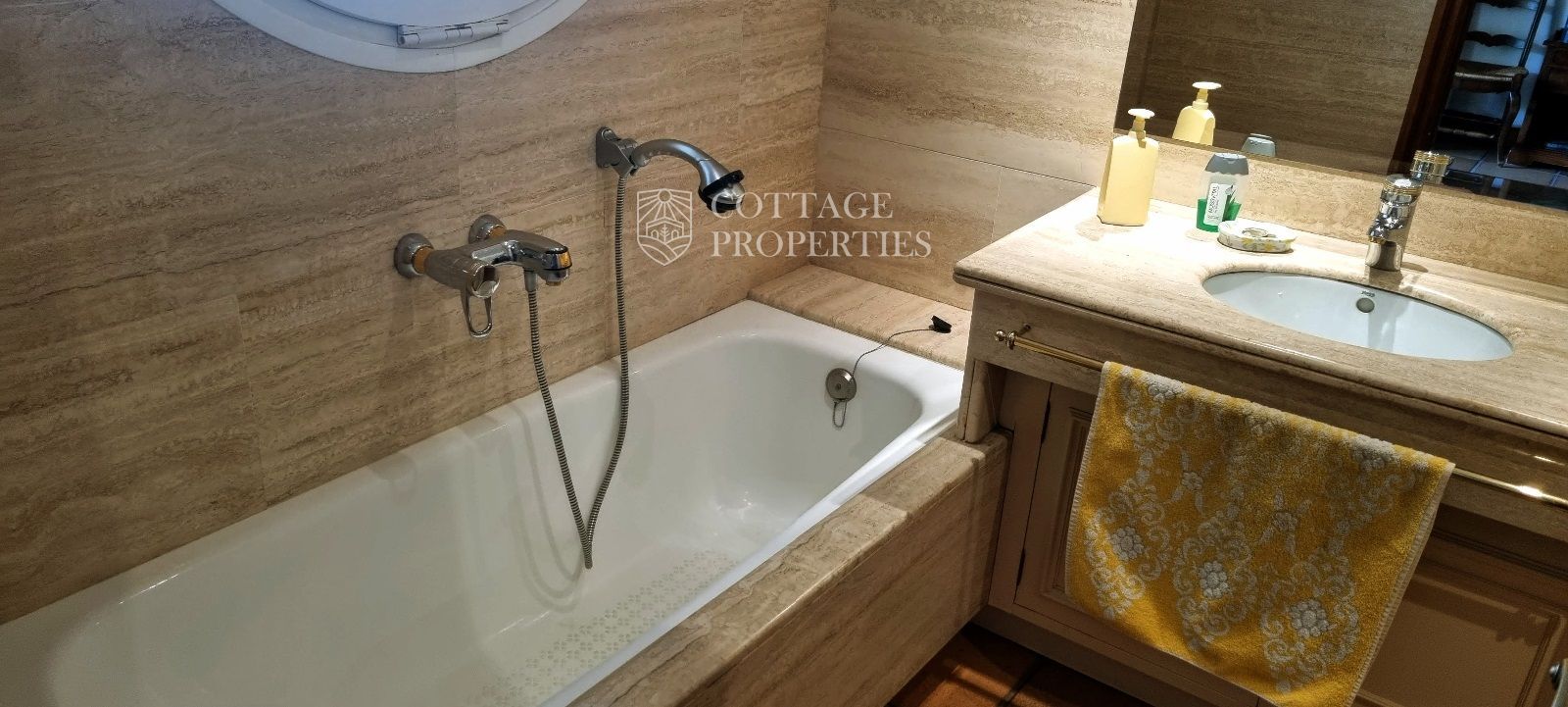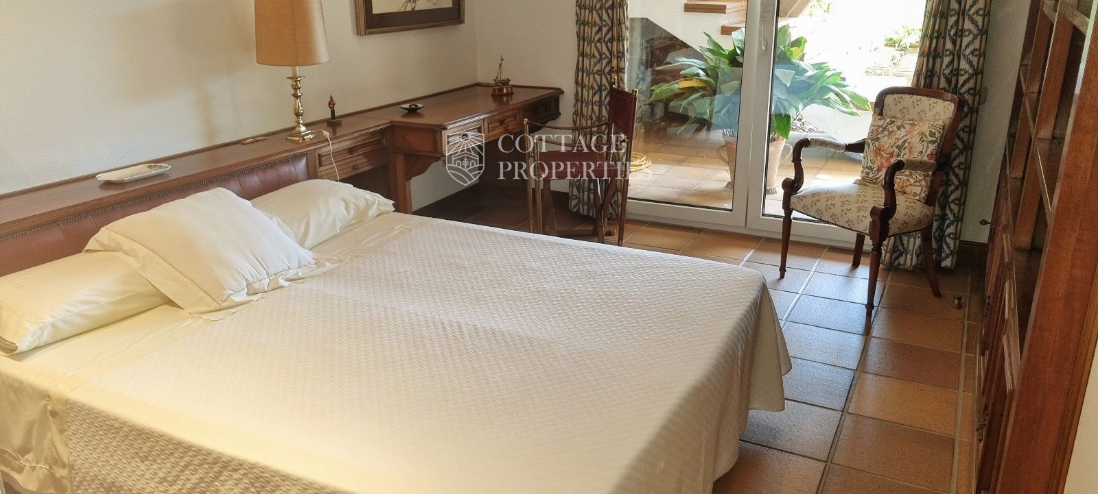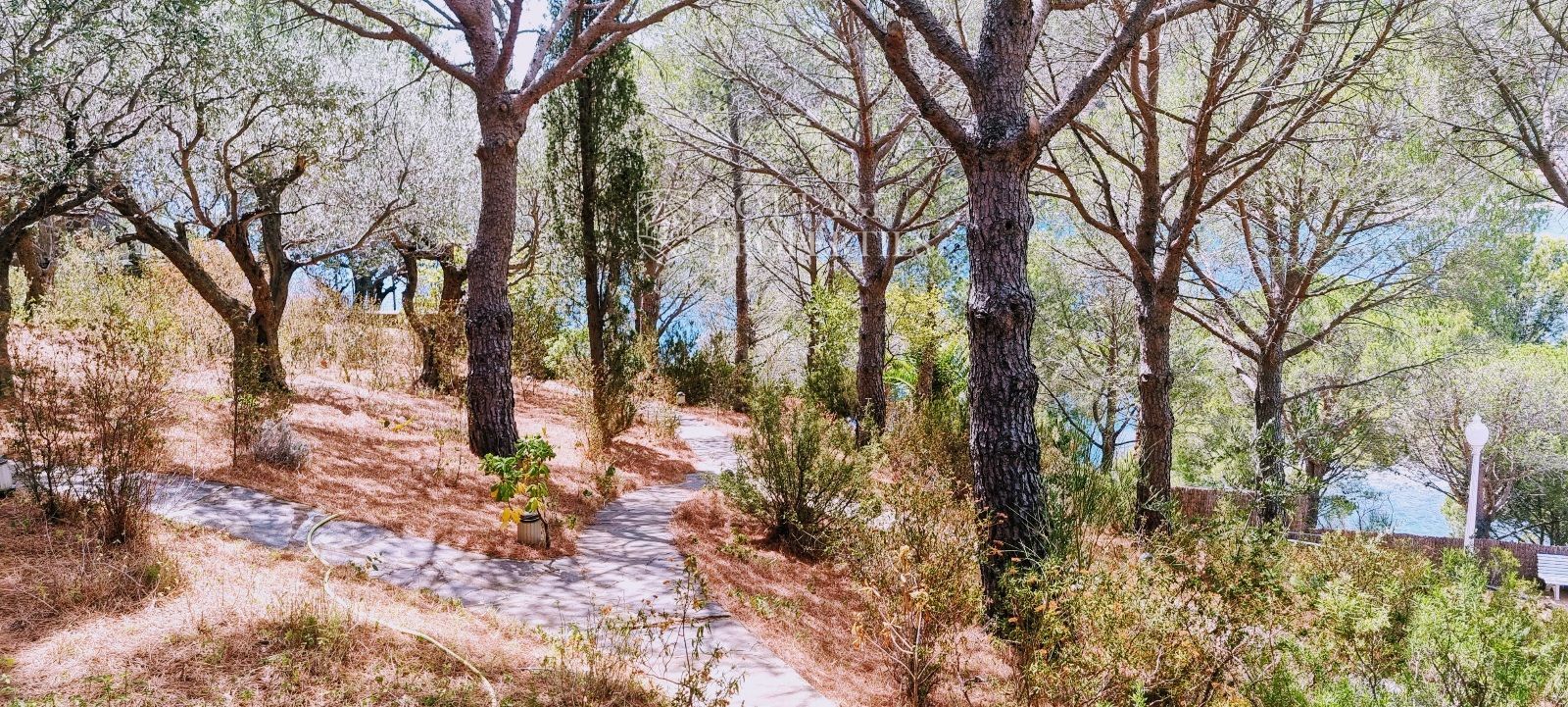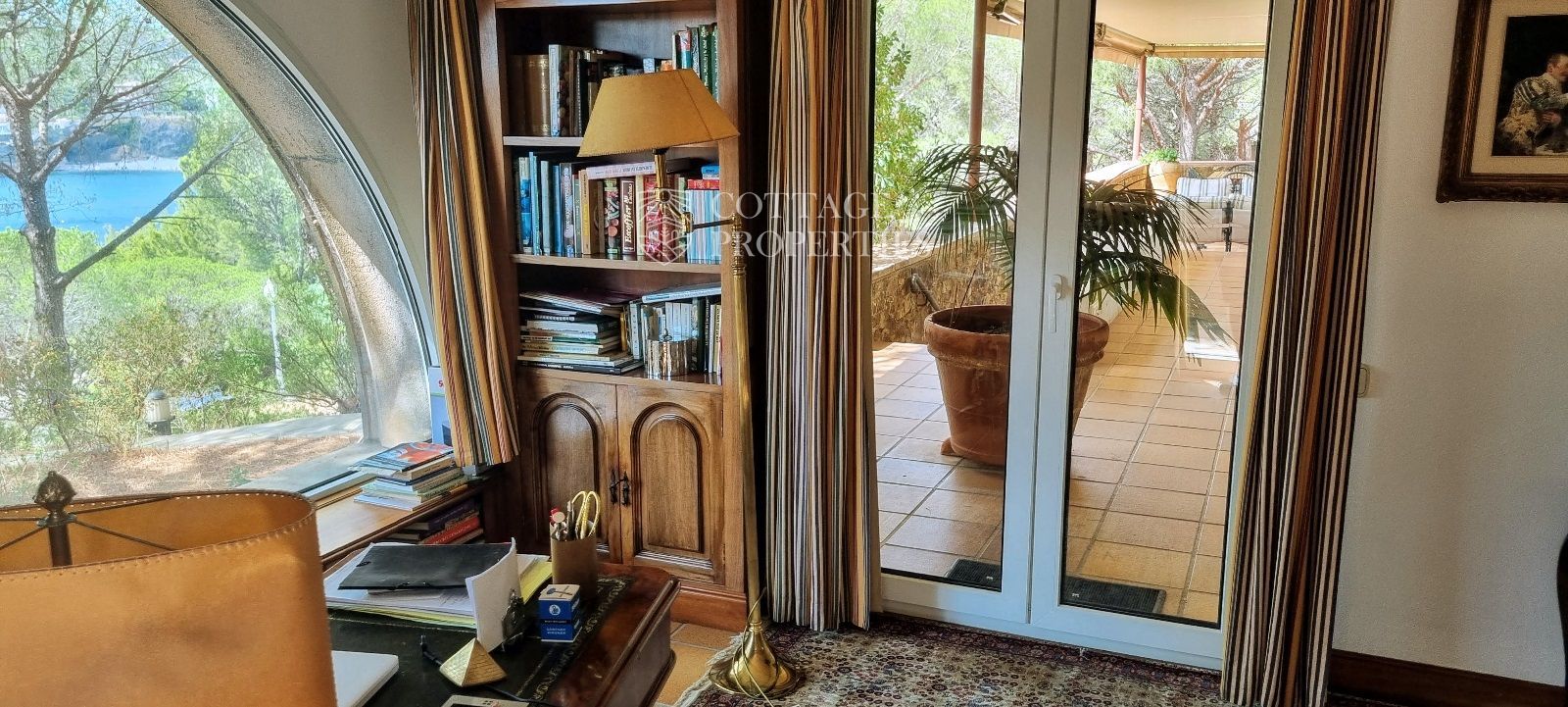 La villa comprend un hall d'entrée élégant, un vaste salon avec accès à une terrasse surplombant la mer, et une salle à manger au même niveau. Elle dispose également d'une grande cuisine, d'une buanderie et de 4 chambres, dont trois avec salle de bains privative. À l'étage supérieur, un palier donne accès à une salle de réunion avec une grande terrasse, une cave à vin, une salle de sport avec sauna, et 3 chambres avec salle de bains privative.