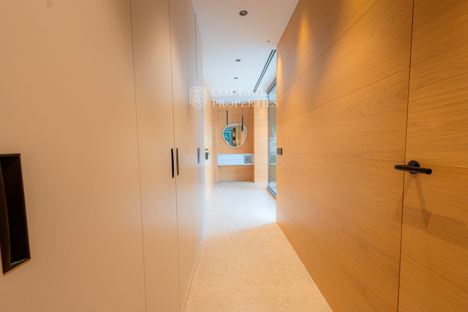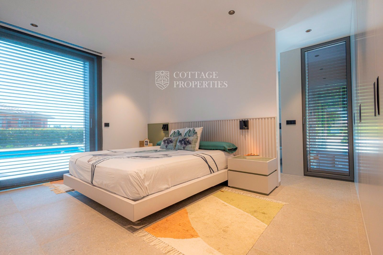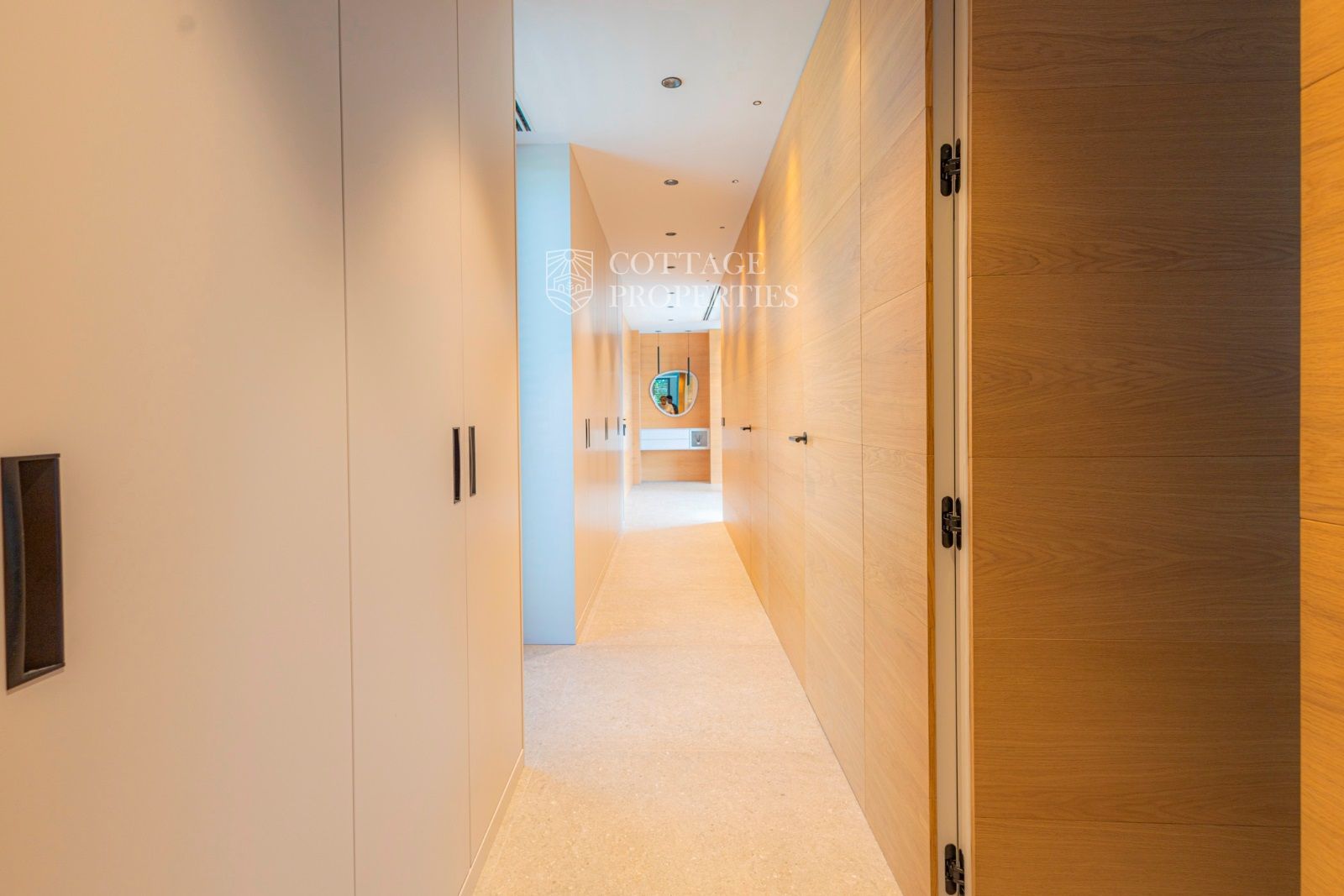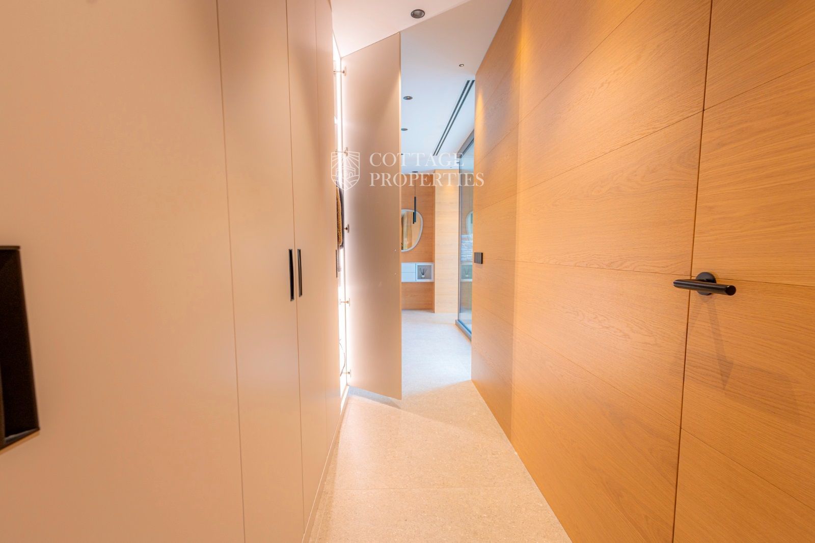 Dans la zone de nuit, au bout du couloir (avec des placards encastrés), il y a une chambre double principale avec salle de bain privée, une chambre double et une chambre individuelle avec une salle de bain complète entre elles.