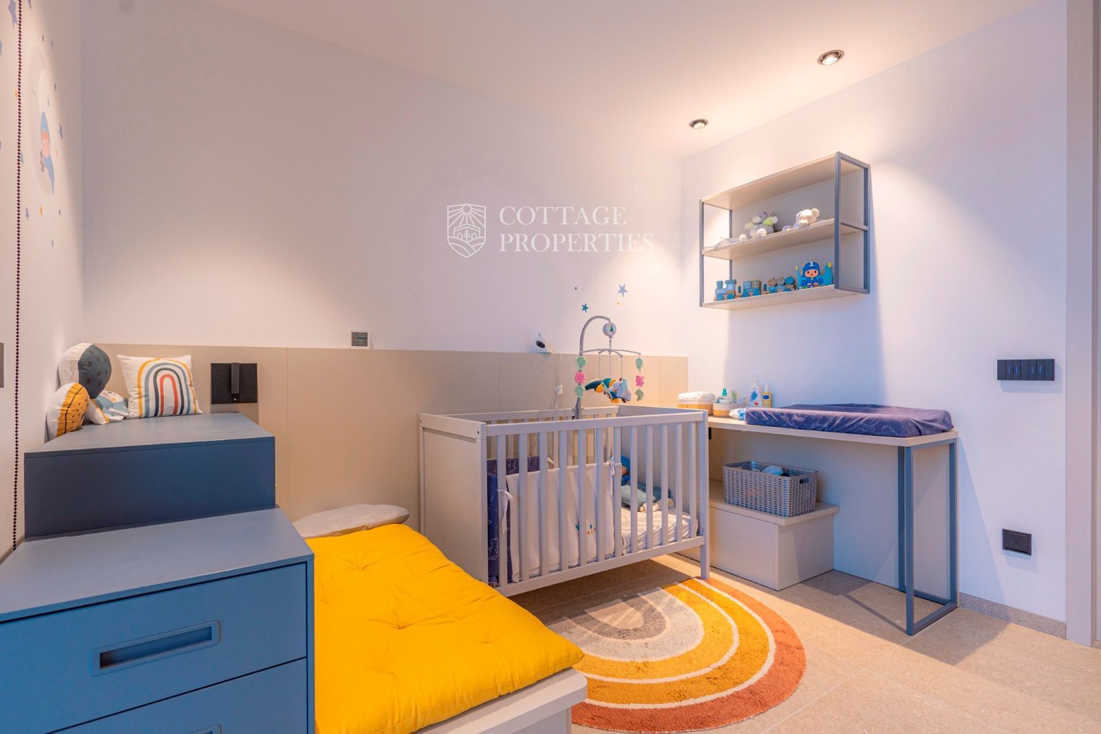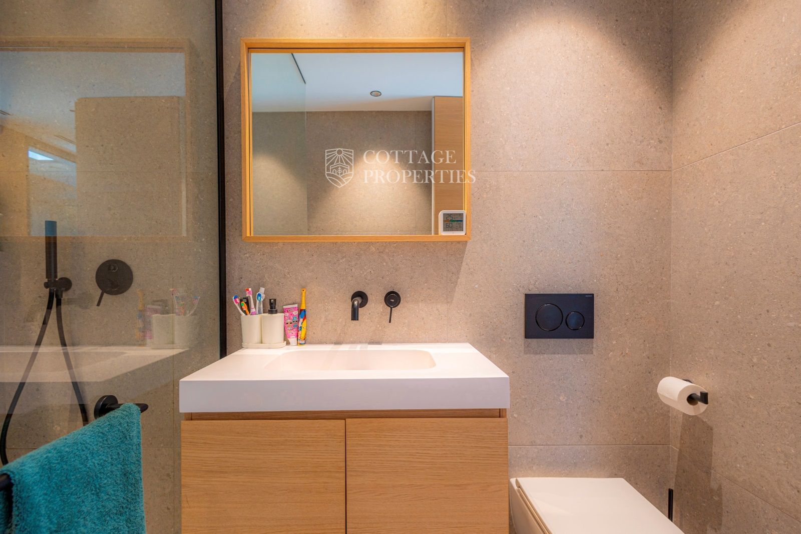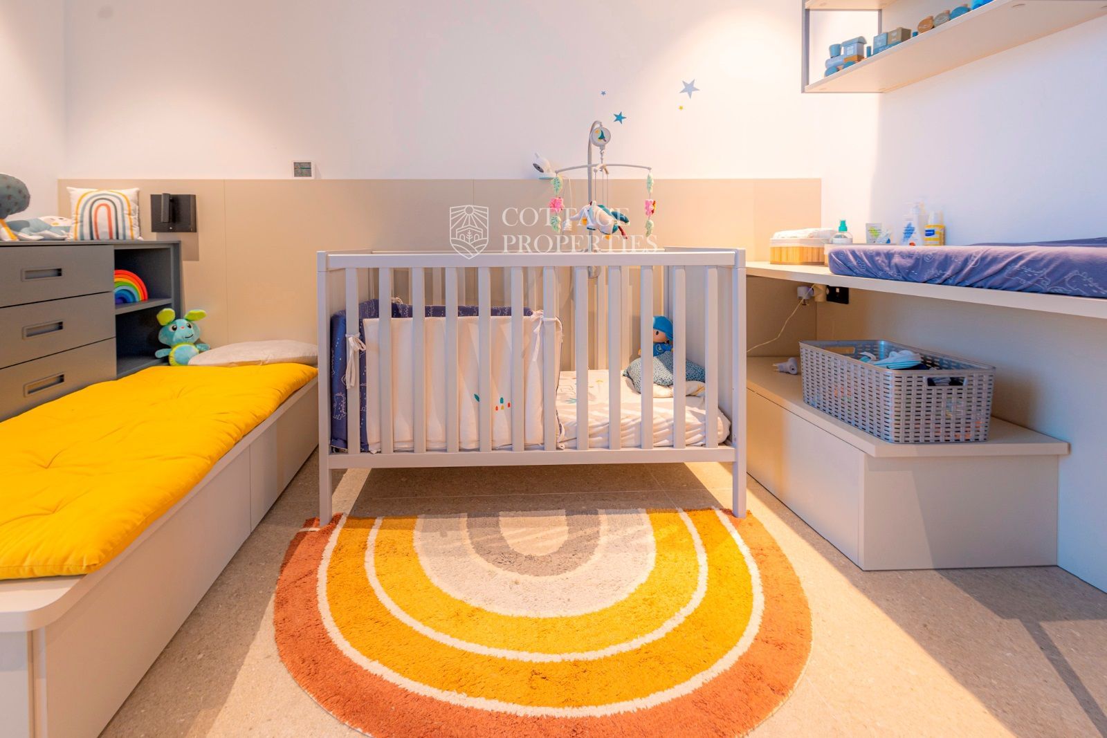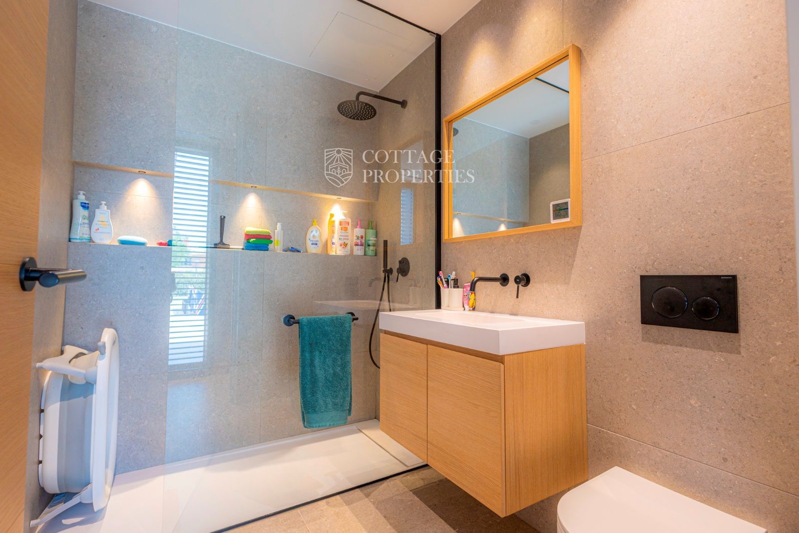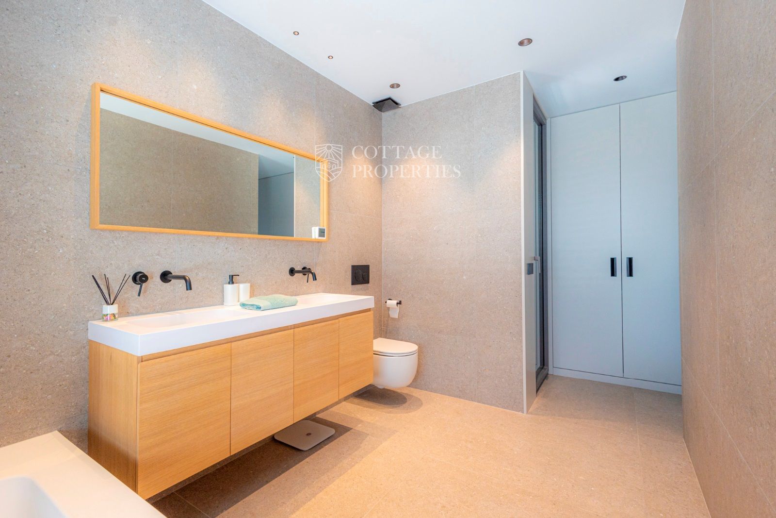 Dans la zone de nuit, au bout du couloir (avec des placards encastrés), il y a une chambre double principale avec salle de bain privée, une chambre double et une chambre individuelle avec une salle de bain complète entre elles.