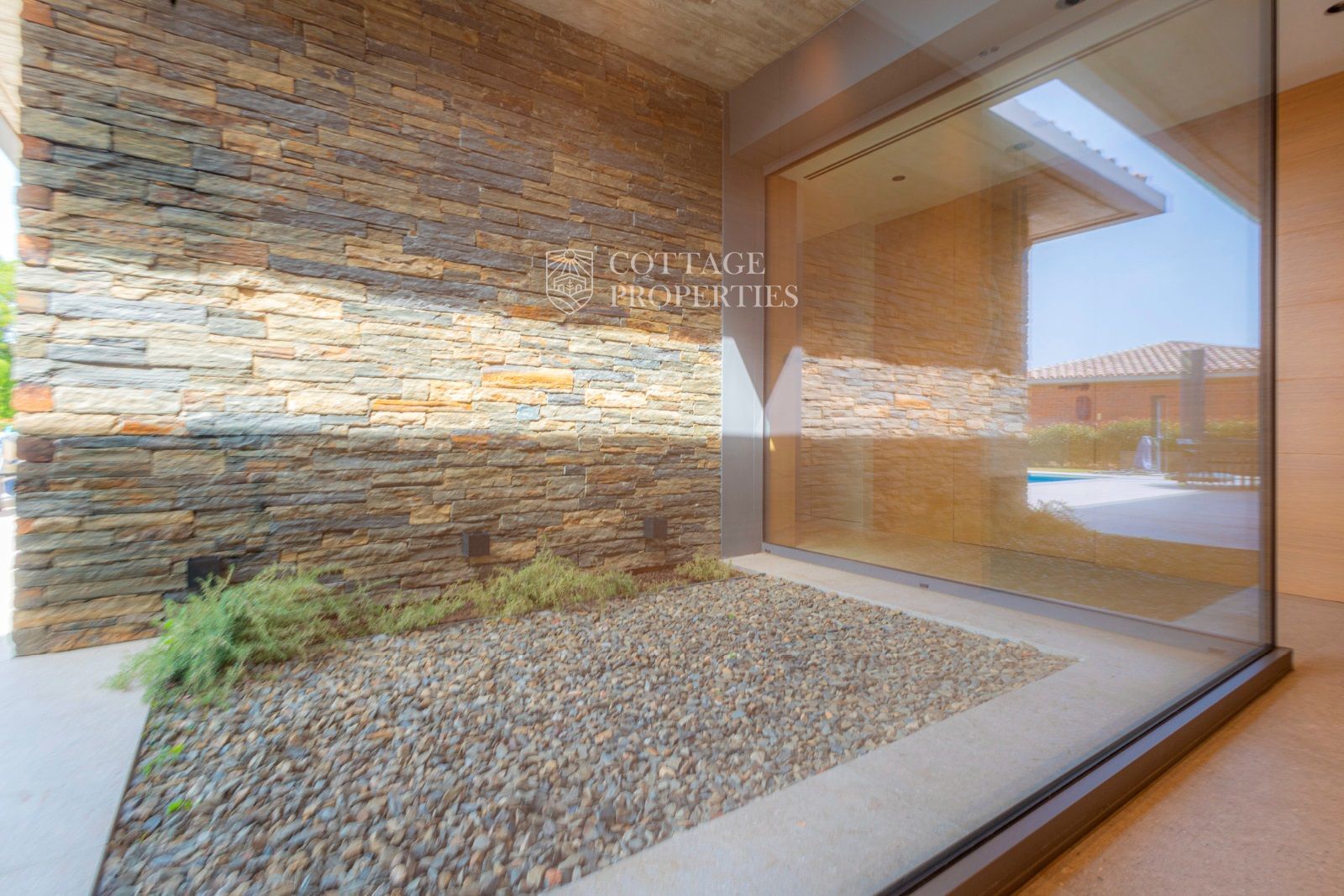 Le confort et le bien-être sont la philosophie de cette villa, qui est isolée avec des murs en pierre double et des vitres à double vitrage, un système domotique de dernière génération dans toute la maison, énergie électrique avec aérothermie, éléments extérieurs en aluminium spéciaux cachés, volets roulants électriques orientables, sols en grès moderne avec chauffage au sol, climatisation par conduits au plafond, stores enrouleurs à toutes les ouvertures, aspiration centrale, système domotique pour le contrôle des lumières, des volets et de l'alarme.