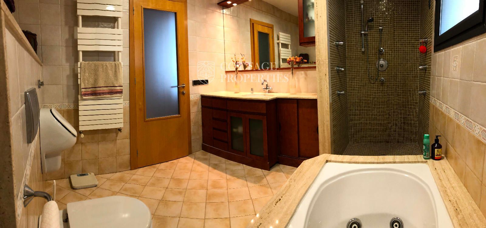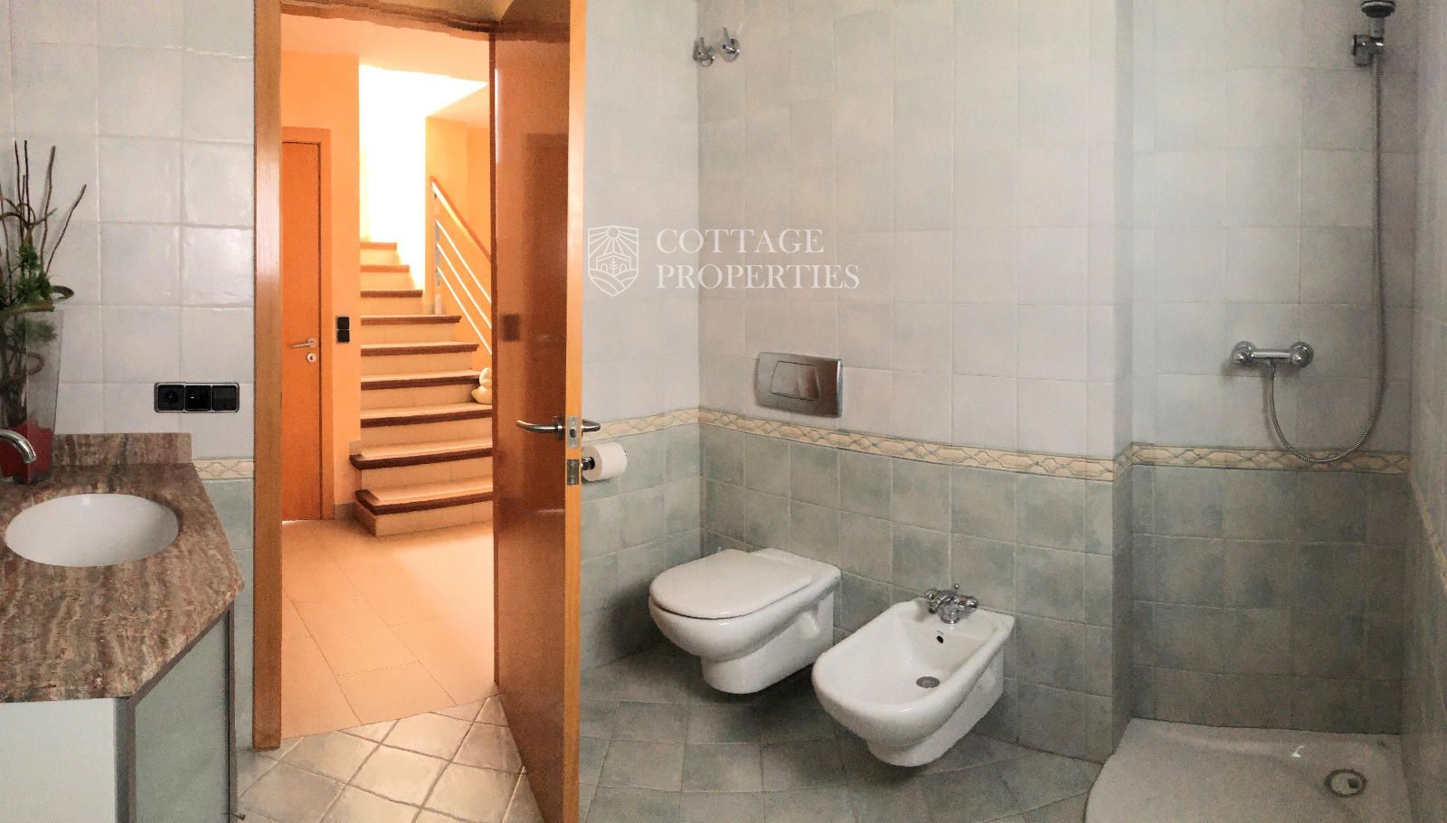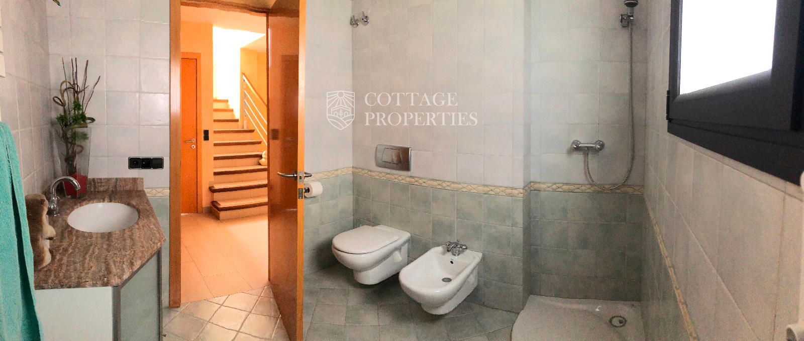 Le rez-de-chaussée comprend un hall d'entrée élégant avec des placards intégrés, une grande cuisine-salle à manger avec une cheminée centrale qui s'ouvre sur le jardin et la terrasse extérieure, idéale pour profiter des repas en plein air avec vue sur la piscine. Ce niveau comprend également une suite parentale avec un dressing et une salle de bain complète avec hydromassage et douche multi-jets, deux chambres doubles, une salle de bain complète avec douche, et une buanderie avec accès à une terrasse de séchage.
