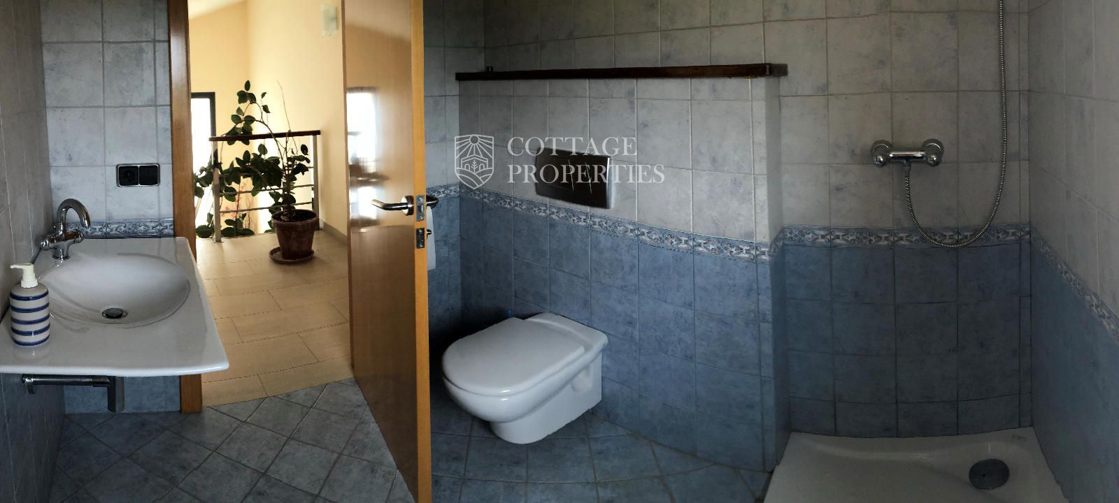 À l'étage supérieur, un grand salon de 60 m² peut être transformé en chambres supplémentaires, avec accès à deux terrasses offrant des vues imprenables. Cet étage comprend également une salle de bain complète et des combles chaleureuses.